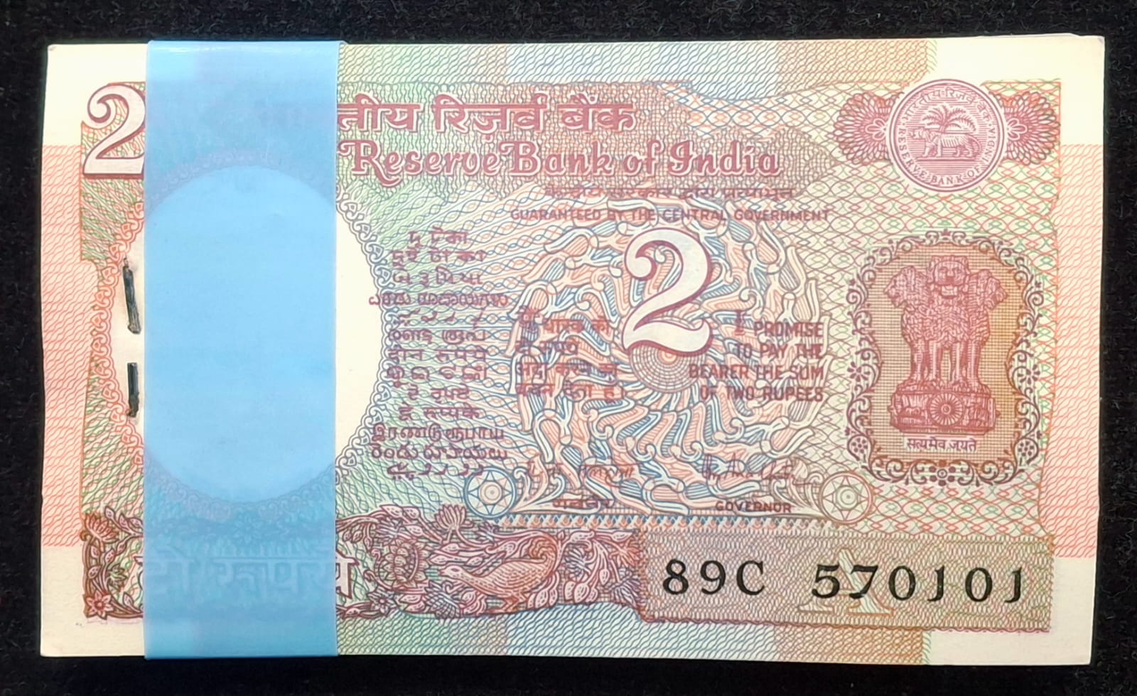 2 RUPEES SATELLITE GOVERNOR R.N.MALHOTRA RARE (100 NOTE) SERIAL PACKET GEM CHOCOLATE CONDITION