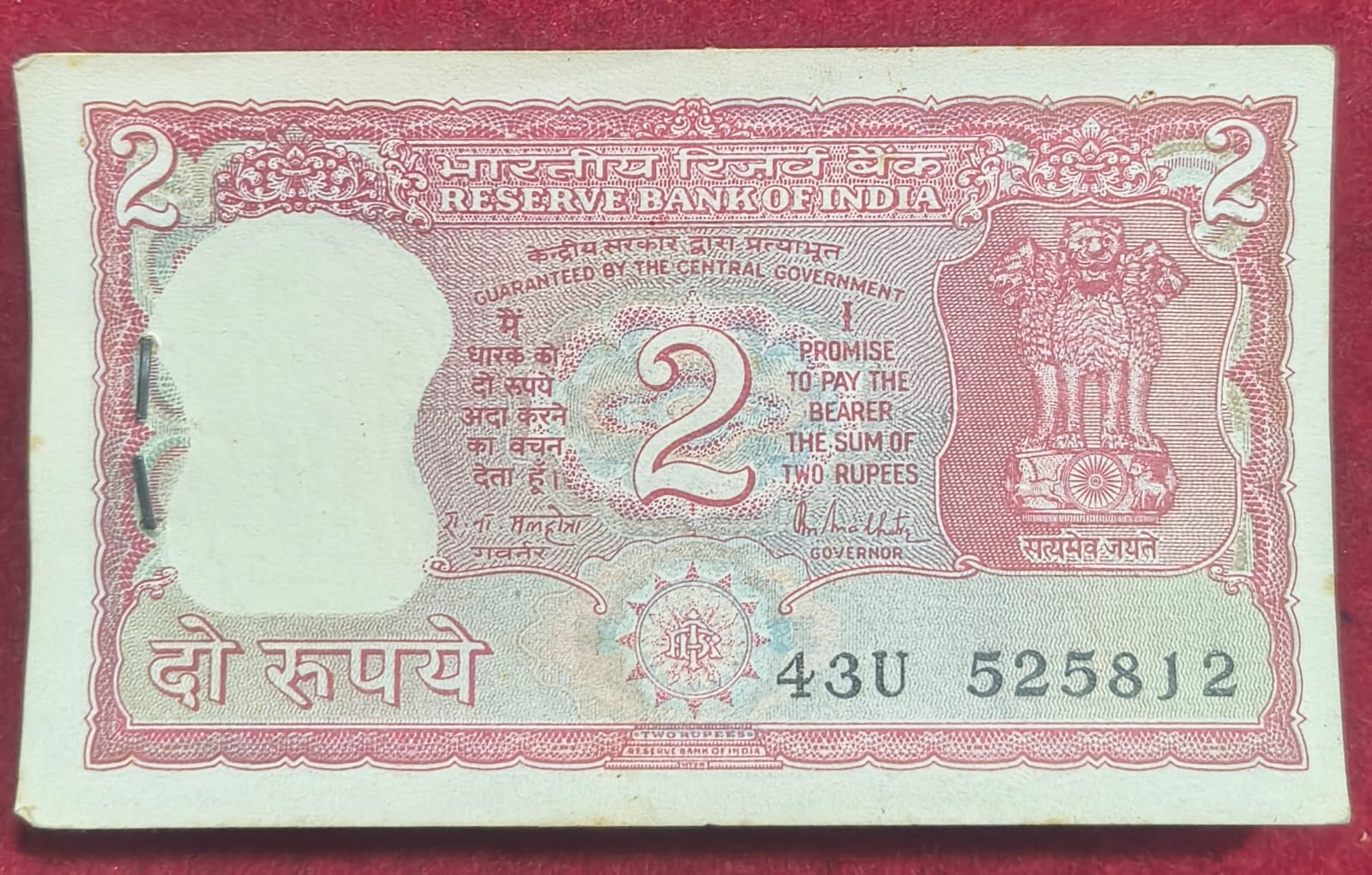2 RUPEES TIGER ISSUE GOVERNOR R.M MALHOTRA RARE SERIAL ( 89 NOTE )