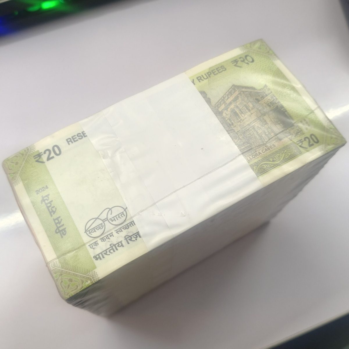 Discover a rare and exclusive collectible – the Rare 20 Rupee RIM Total 10 Bundle New Fresh 1000 Notes RIB Sealed Packed RIM at Lowest Price. These 20 Rupee notes, with a face value totaling 20,000, are a unique find for any collector or enthusiast. Each note is fresh, unused, and sealed in a pack of 1000, ensuring pristine condition.