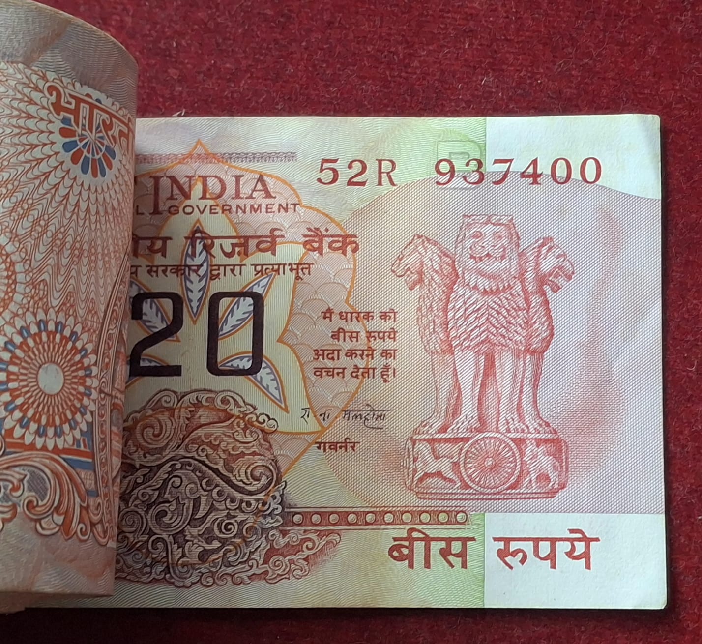 20 RUPEES GOVERNOR R.N.MALMHOTRA ( B INSERT) RARE (100 NOTE) SERIAL PACKET