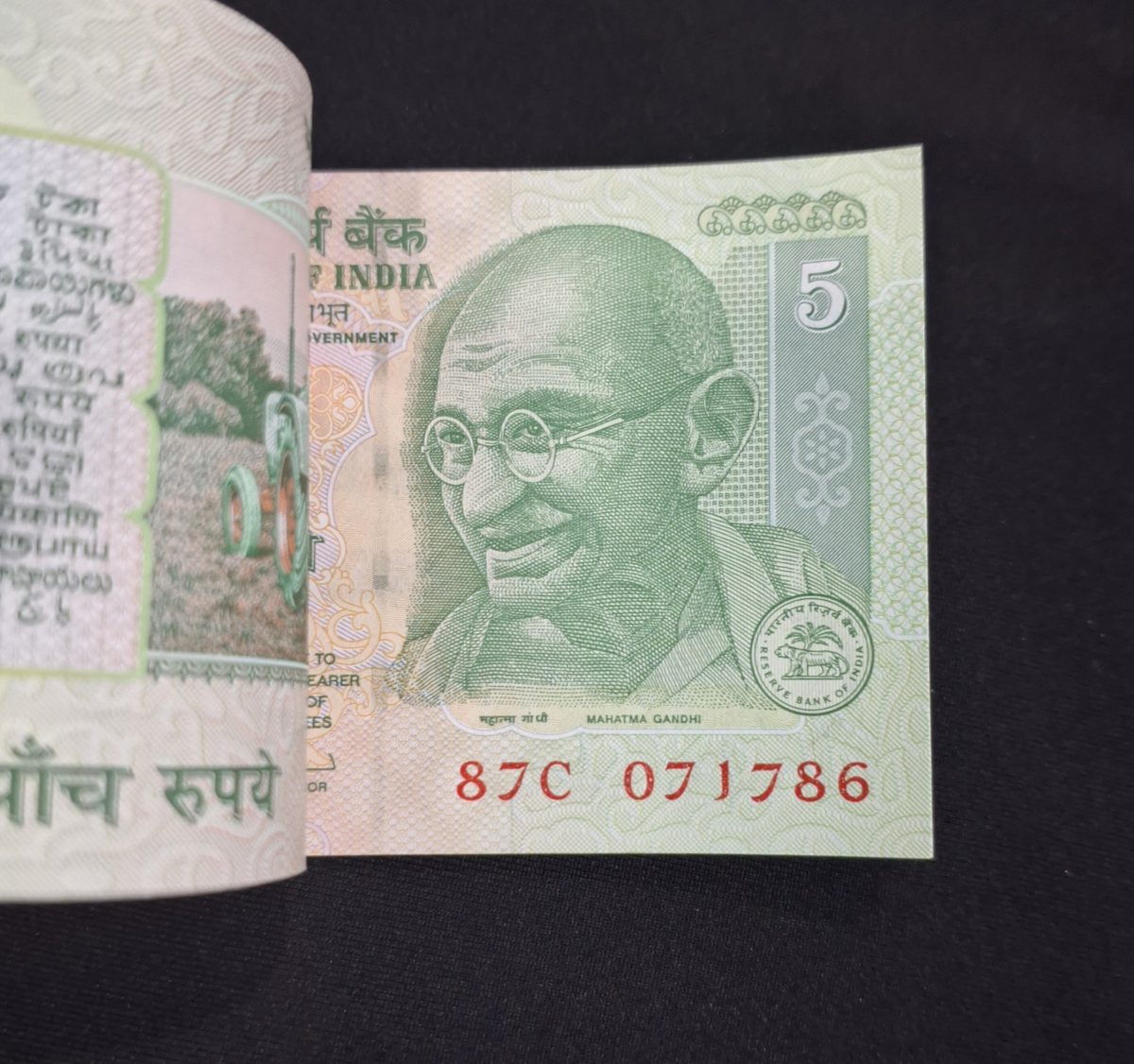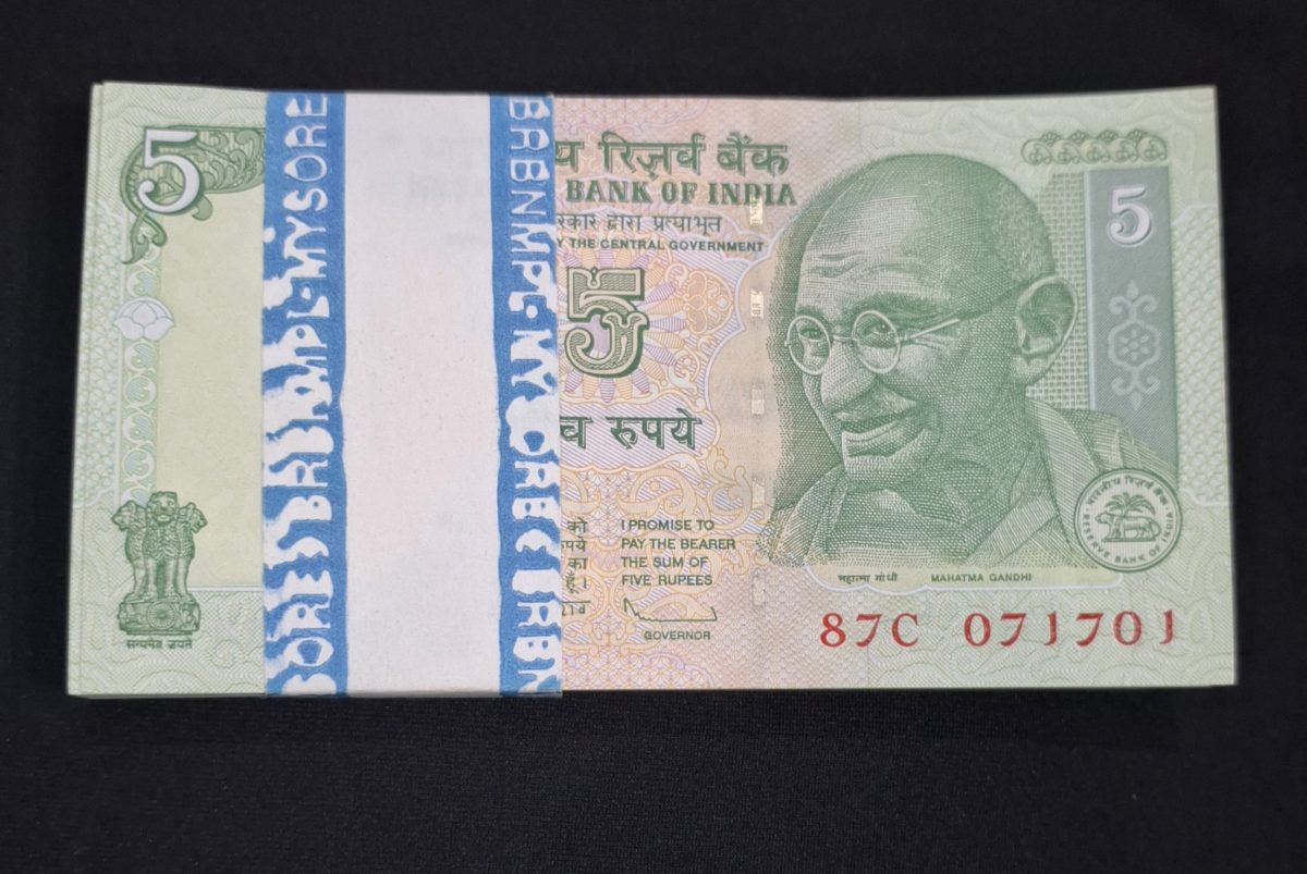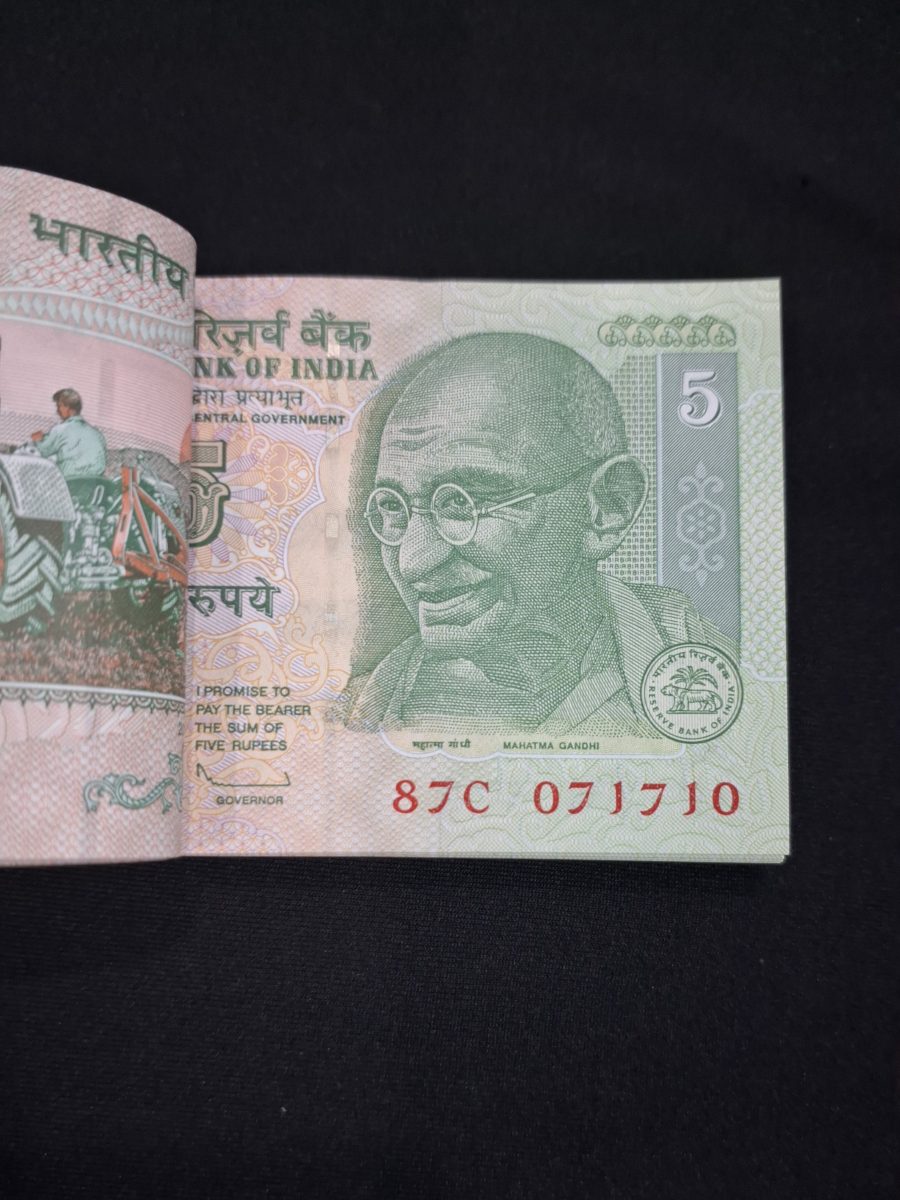 5 RUPEE FULL NOTE BUNDLE ENDING 786 BUNDLE GEM UNC CONDITION SERIAL NO. 071701