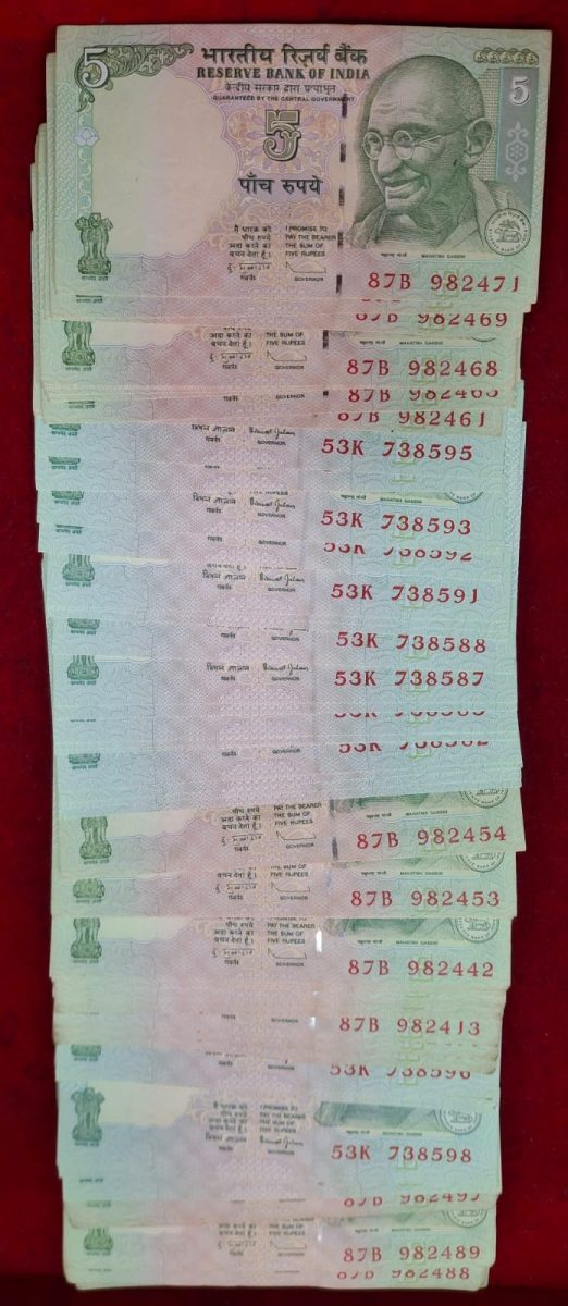 5 RUPEES 100 PCS UNC NON SERIEL MIX GOVERNER (100 PCS LOTT)