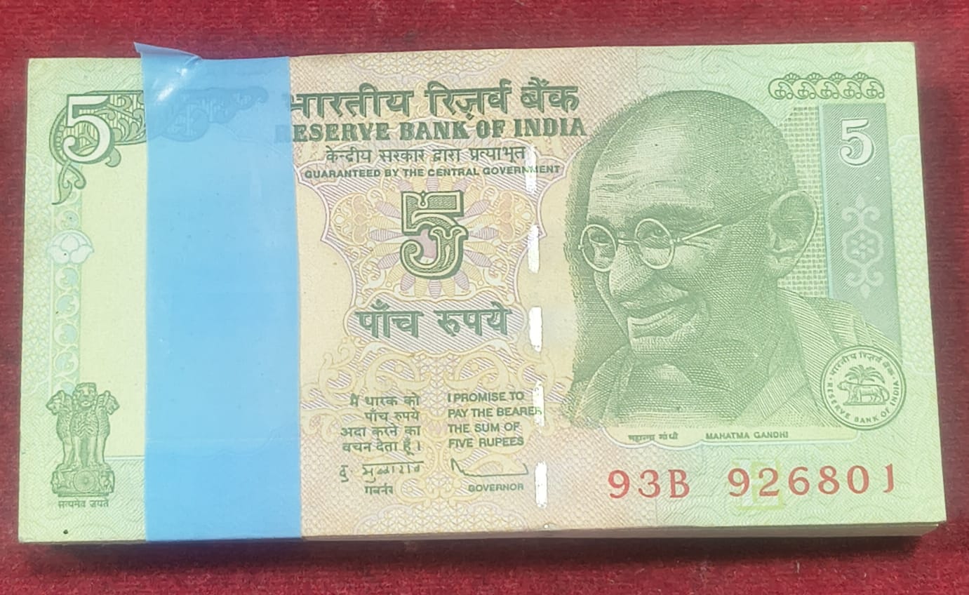 5 Rupees Gandhi Governor D.Subbarao (100 Note) Serial Packet Unc