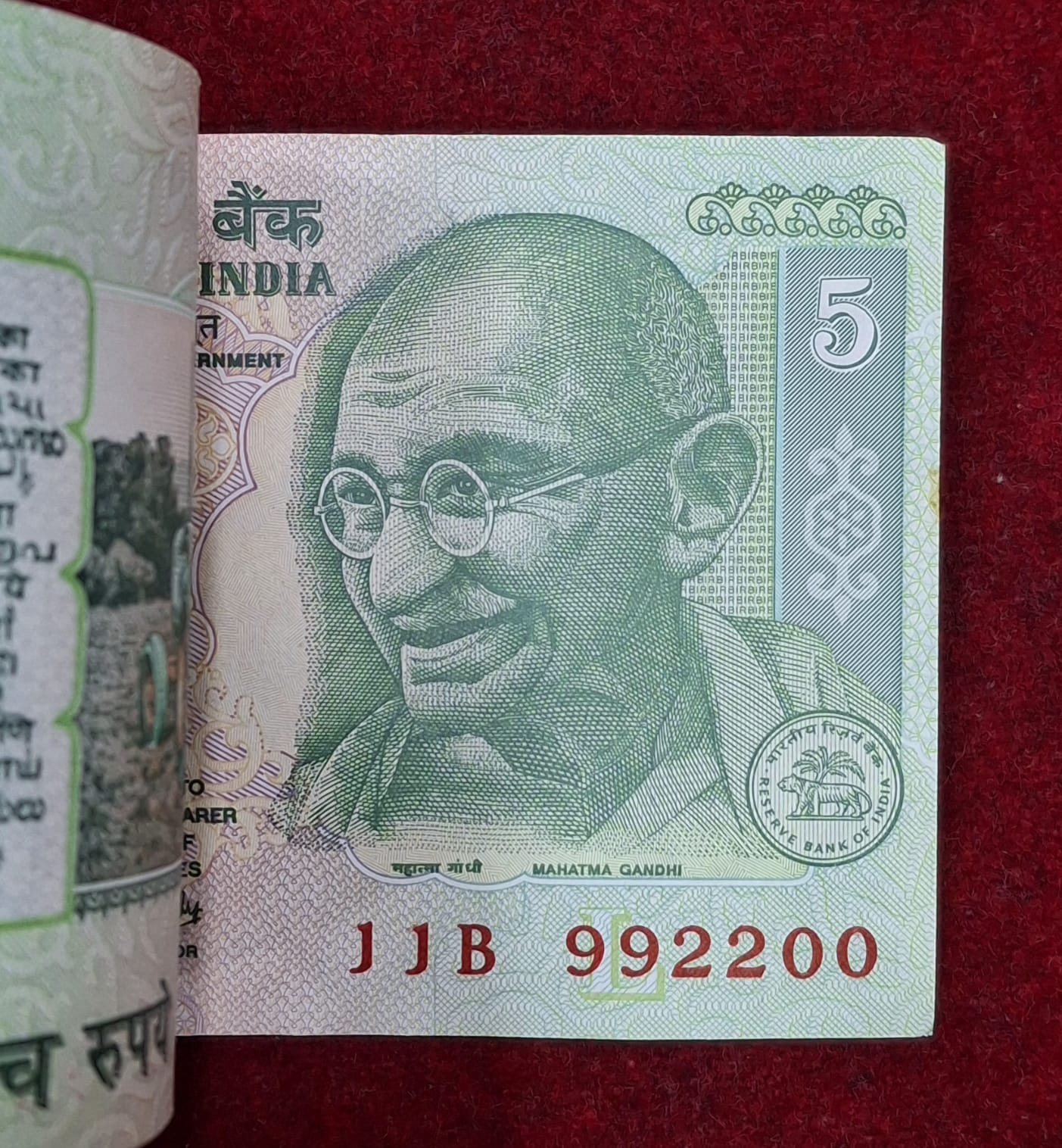 5 RUPEES GANDHI GOVERNOR Y.B.REDDY RARE SERIAL PACKET