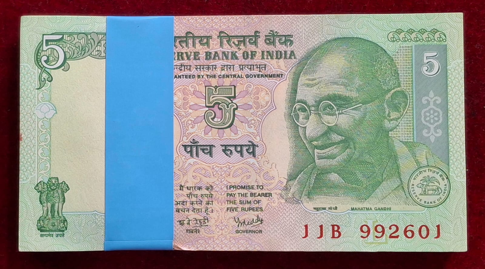 5 RUPEES GANDHI GOVERNOR Y.B.REDDY RARE SERIAL PACKET