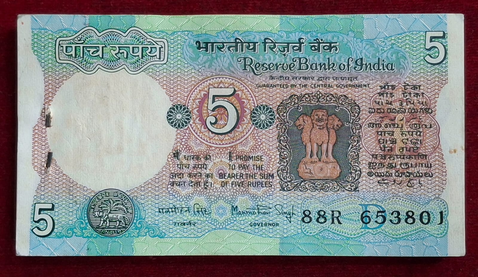 5 RUPEES TRACTOR GOVERNOR MANMOHAN SINGH RARE SERIAL PACKET