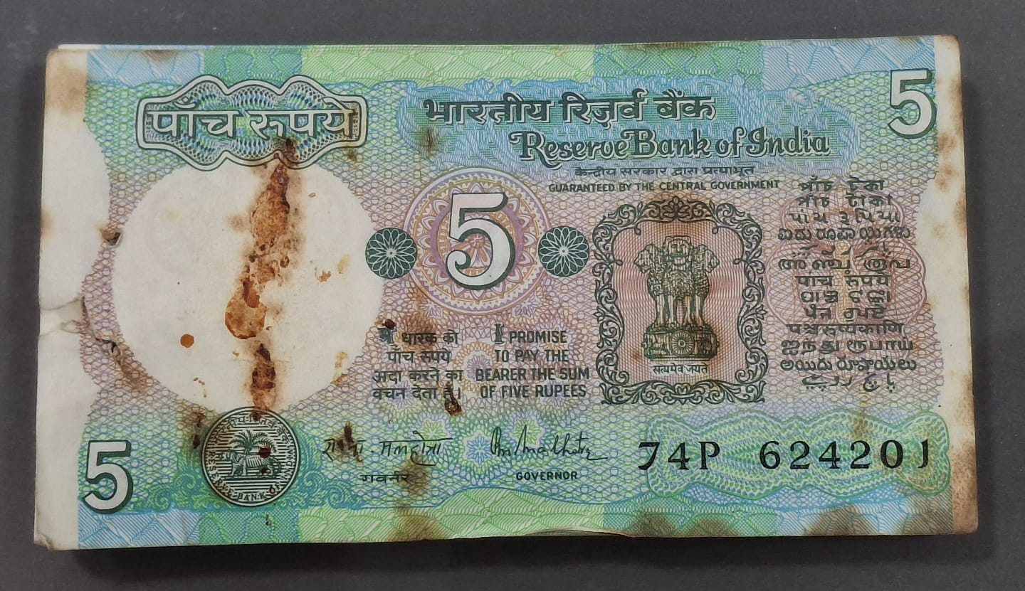 5 RUPEES TRACTOR GOVERNOR R.N.MALHOTRA RARE (100 NOTE) PIN REMOVED SERIAL PACKET