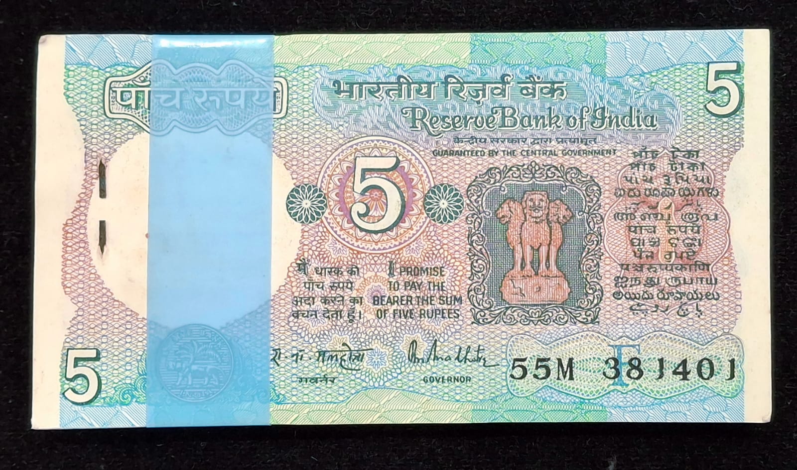 5 RUPEES TRACTOR ISSUE GOVERNOR R.N.MALHOTRA RARE GEM UNC (100 NOTE) SERIAL PACKET