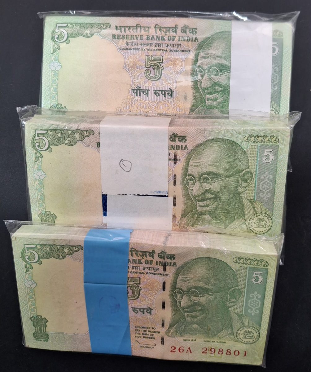 5 RUPEES TRACTOR ISSUE GOVERNOR SUBBARAO RARE SERIAL PACKET