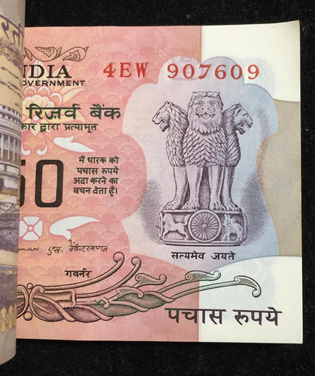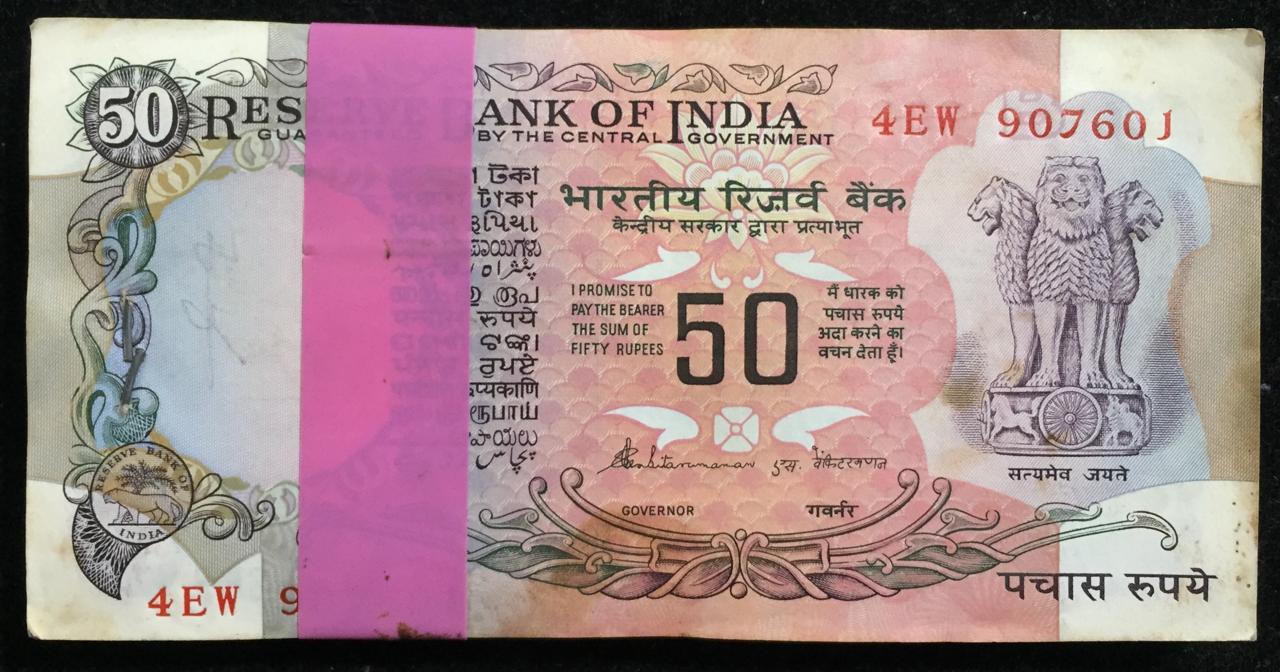 50 Rupees Old Issue Parliament Serial Governor S. Venkitaramanan UNC Condition Packet