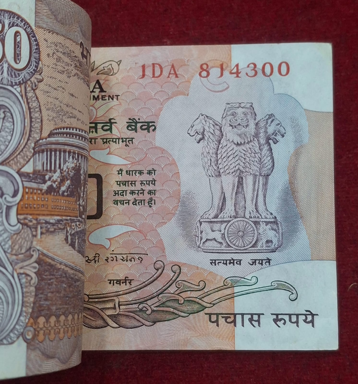 50 RUPEES PARLIAMENT FLAG GOVERNOR C.RANGARAJAN GEM CHOCOLATE CONDITION SERIAL PACKET
