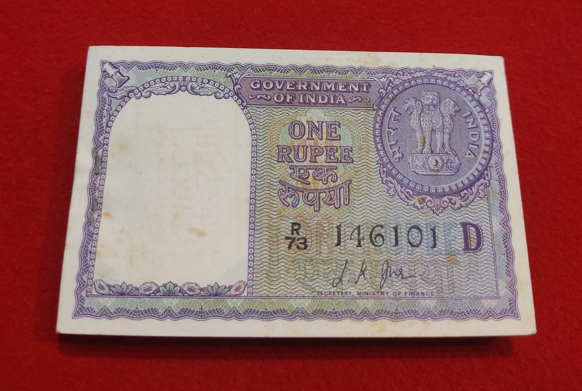 A-12 ONE RUPEE PACKET SECRETARY MINISTER L. K. JHA YEAR 1957 MILKY WHITE CHOCOLATE CONDITION