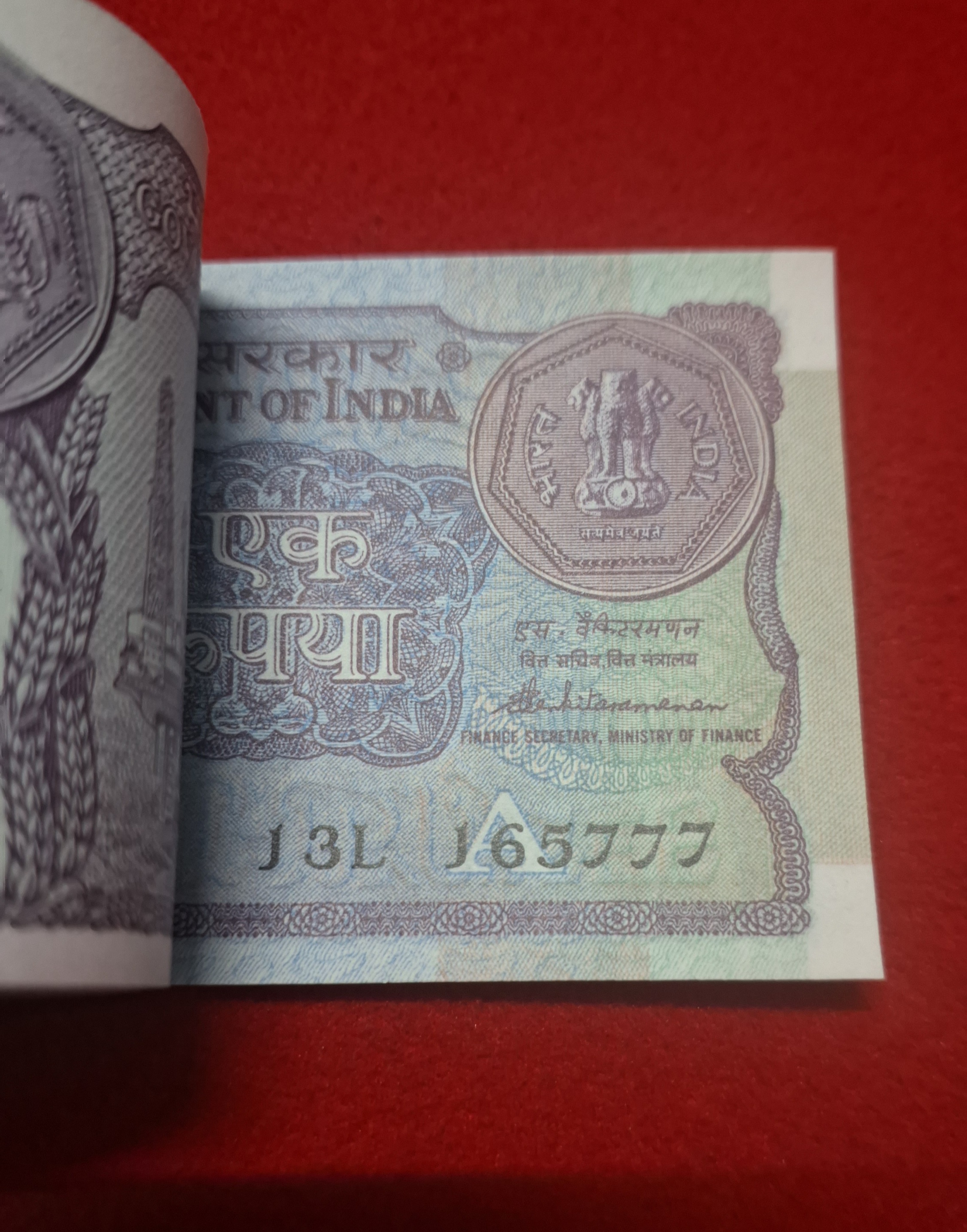 A49 ONE RUPEE PACKET S. VENKITARAMANAN 1986 SERIAL NO. 13L 165701