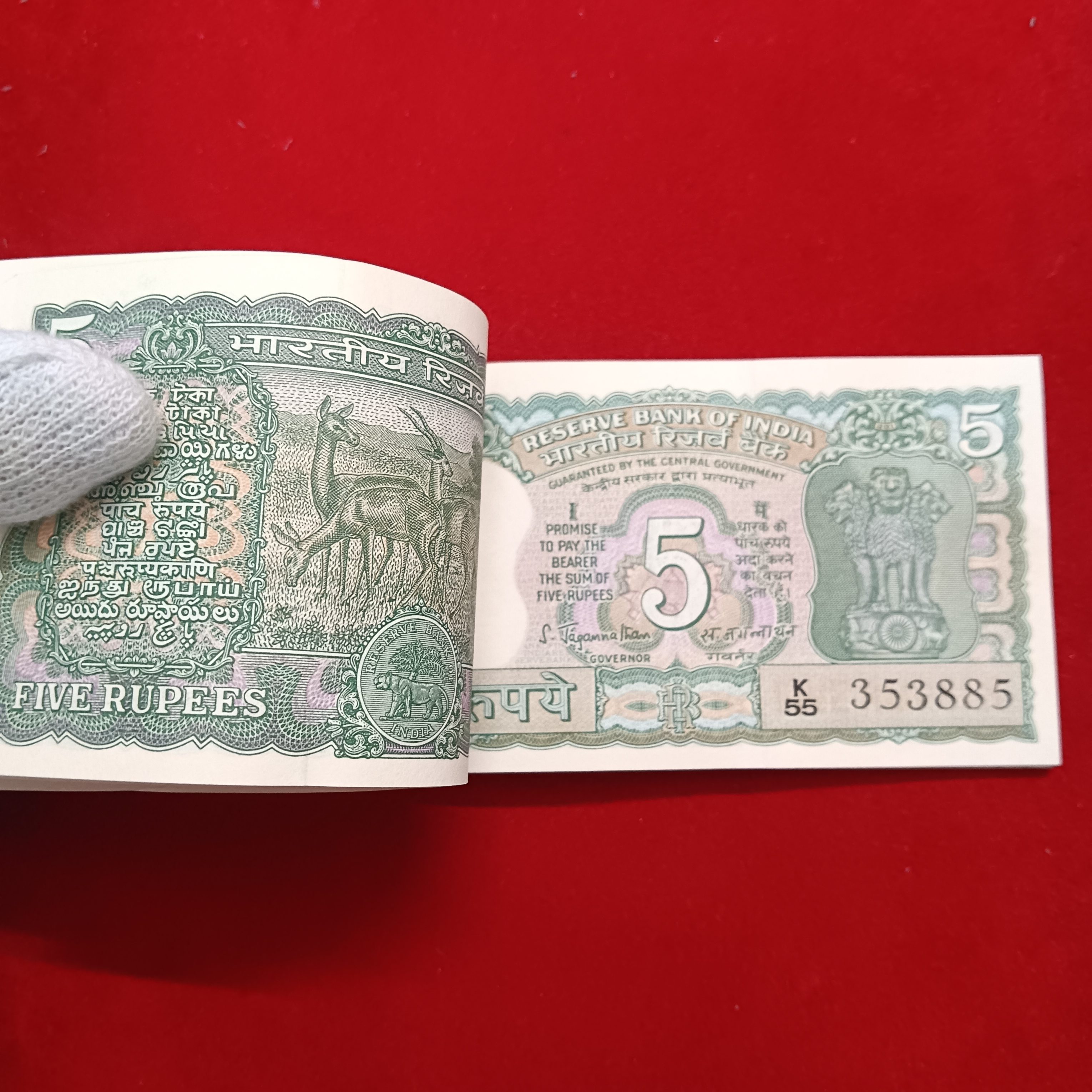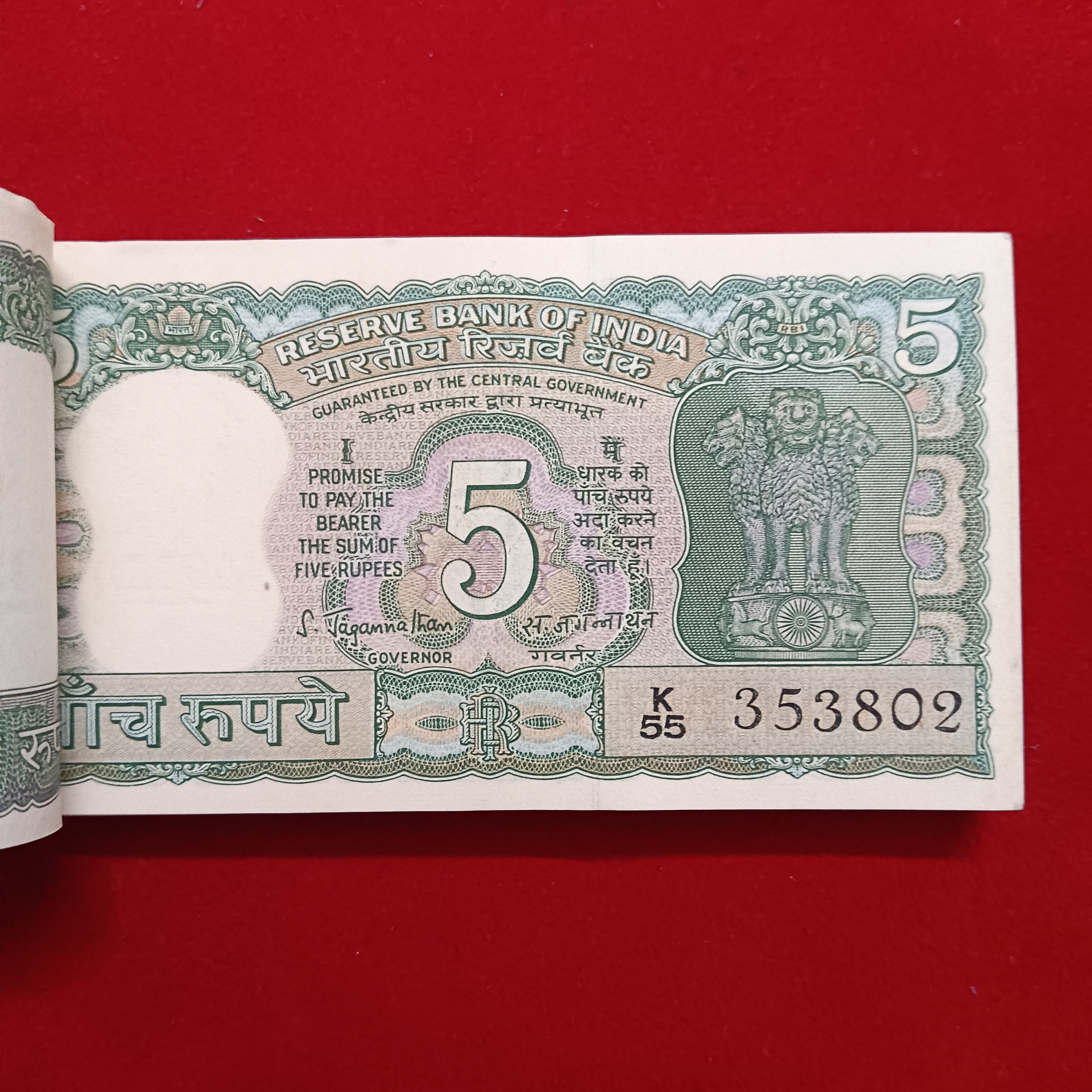 The Ex Rare Five Rs Deer Full Serial Bundle Governor S. Jagannathan Ultra Gem UNC Condition 353801 is a coveted collectible 5 Rupees banknote featuring the signature of Governor S. Jagannathan. Issued in pristine UNC (new) condition, this banknote holds significant historical and numismatic value. Dating back to [Year], this banknote showcases a unique design featuring a deer and holds a special place in the collector’s world due to its rarity and impeccable preservation. With a low mintage and being part of a full serial bundle, this item is a true gem for enthusiasts seeking exclusive pieces with appreciating value. The banknote’s exceptional condition, combined with its collector’s grade status, makes it a must-have for those passionate about numismatics and rare currency items.