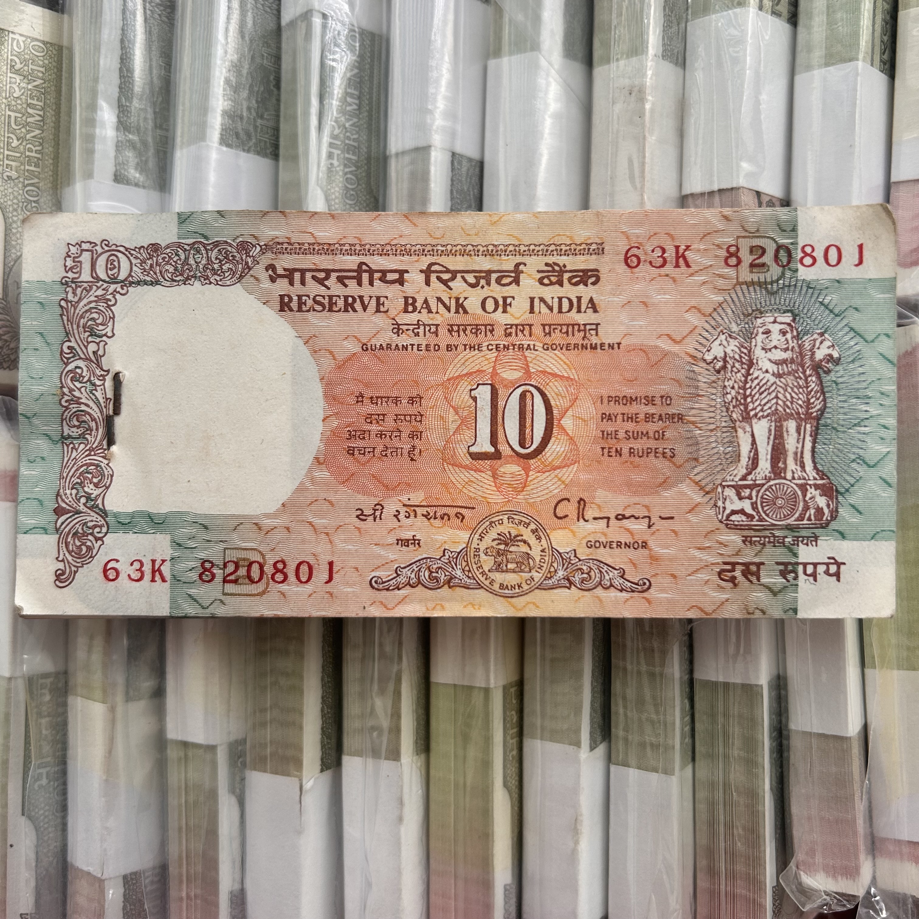Discover an exquisite piece of history with the Extremely Rare 10 Rupee Shalimar Garden Bundle Doubling No 820820 signed by C Rangarajan. This uncirculated (UNC) banknote from a bygone era holds immense significance for collectors and enthusiasts alike. Issued in an unknown year, this 10 Rupee note bears the signature of the renowned C Rangarajan, adding to its rarity and authenticity. The bundle features a doubling number of 820820, making it a truly unique find. Each note in this packet is carefully preserved, showcasing a 100% genuine old collection identical to what is shown. This piece offers a glimpse into the past, evoking the charm of historical currencies and the artistry of banknote design. With its exceptional condition and provenance, this collectible item presents a valuable investment opportunity for those who appreciate the beauty and legacy of numismatics.