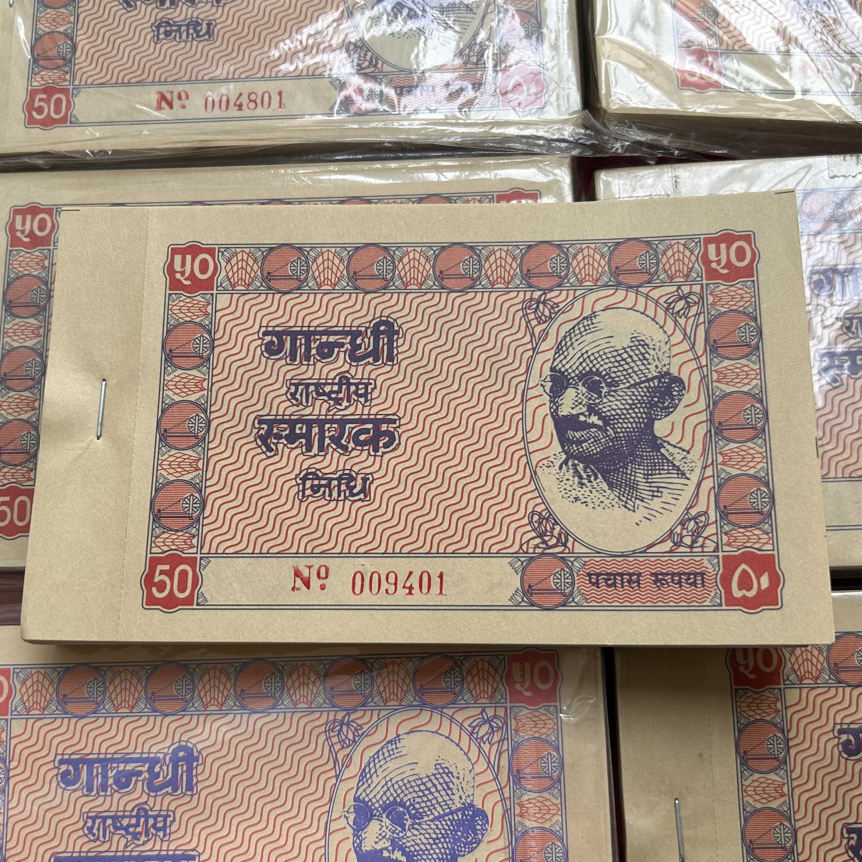 Extremely Rare 50 Rupee Hundi Bundle in GEM UNC Condition Old 100 Currency Note Serial Wise Packet Different Serial No Gaddi Given Gandhi Smarak Nidhi Issue