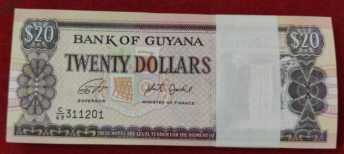 Guyana 20 Extermaly RARE GEM UNC (100 note ) SERIAL Packet