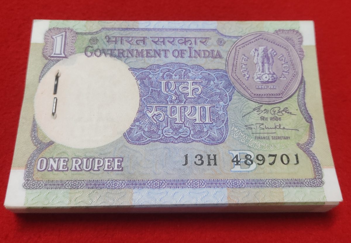 This extremely rare one rupee bundle from 1991, signed by S P Shukla, features 100 serial-wise notes ending in 786. Comes in chocolate condition with serial 489701—an exceptional collector’s find.