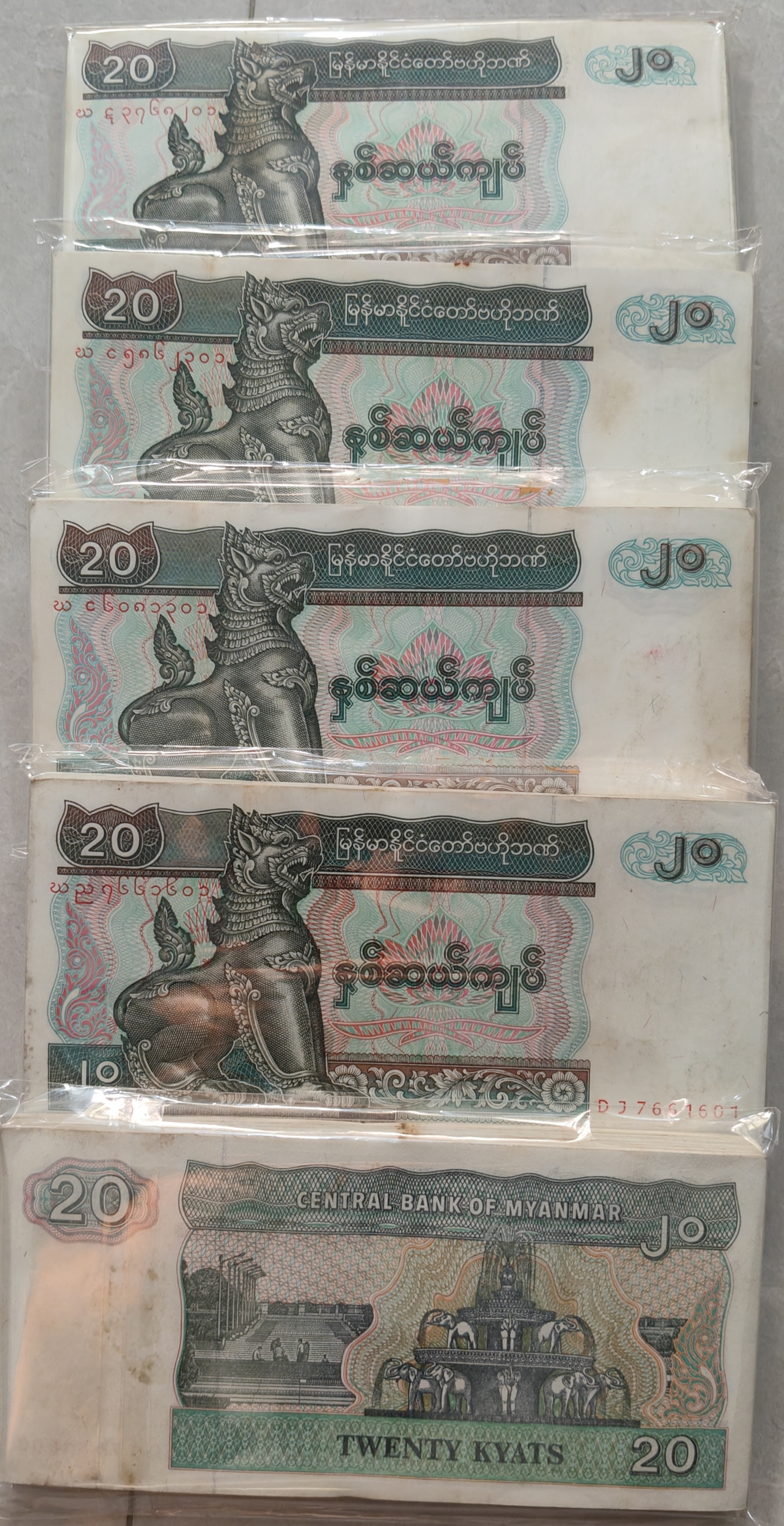 Myanmar 20 Kyats UNC (100 Note) Serial Packet