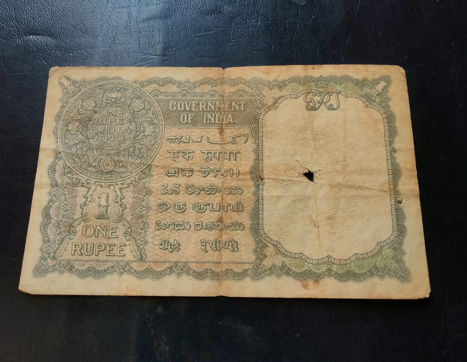 Note BRITISH INDIA YEAR 1940 RARE One RUPEE KING 👑 GEORGE Vl
