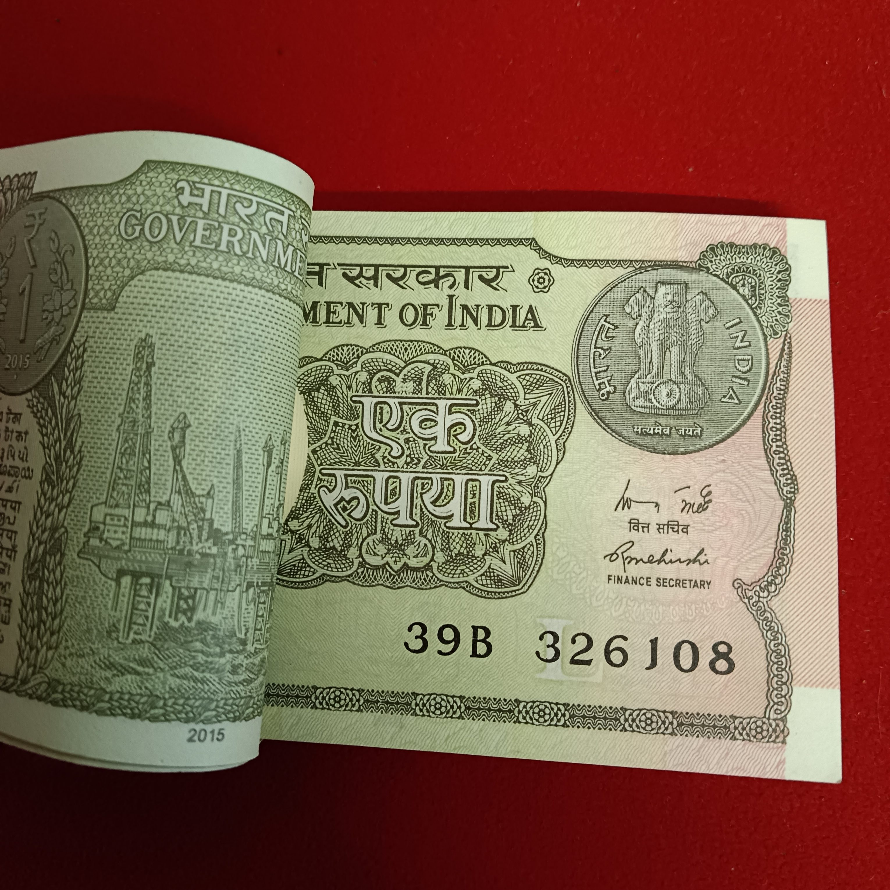 - One Rs Full Bundle Finance Minister Rajiv Maheshwari Unc 2015 Year 326101