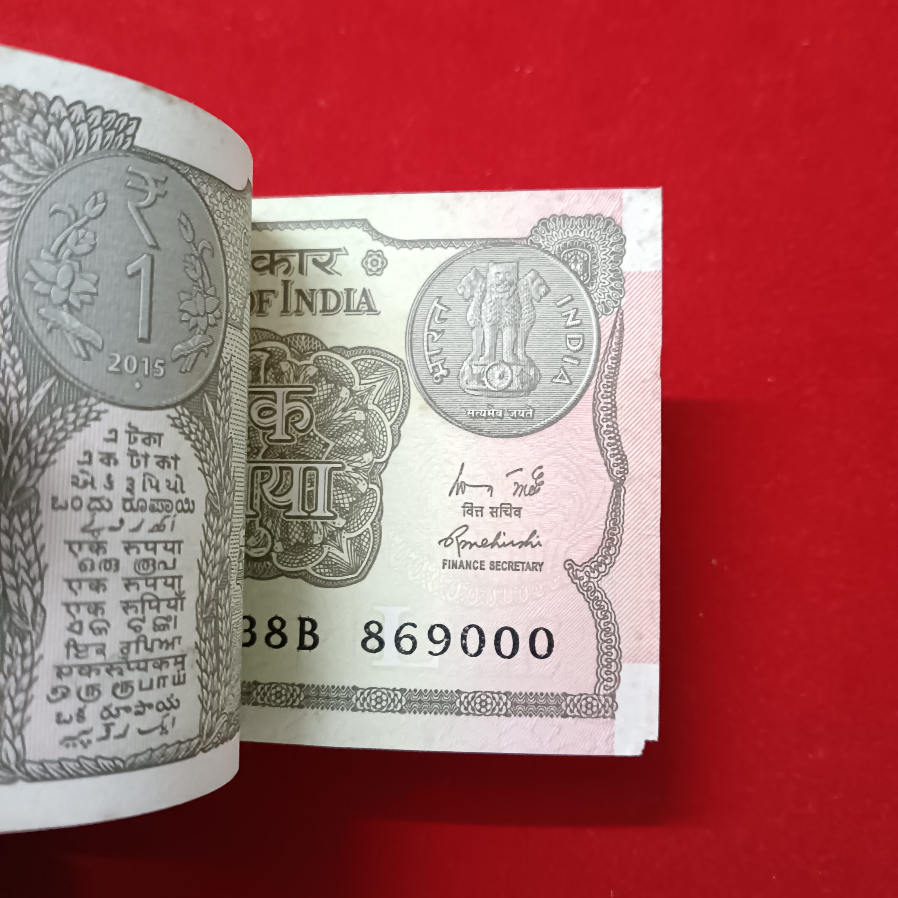 One Rs Full Bundle Finance Secretary Rajiv Mehrishi 2015 Year 868901