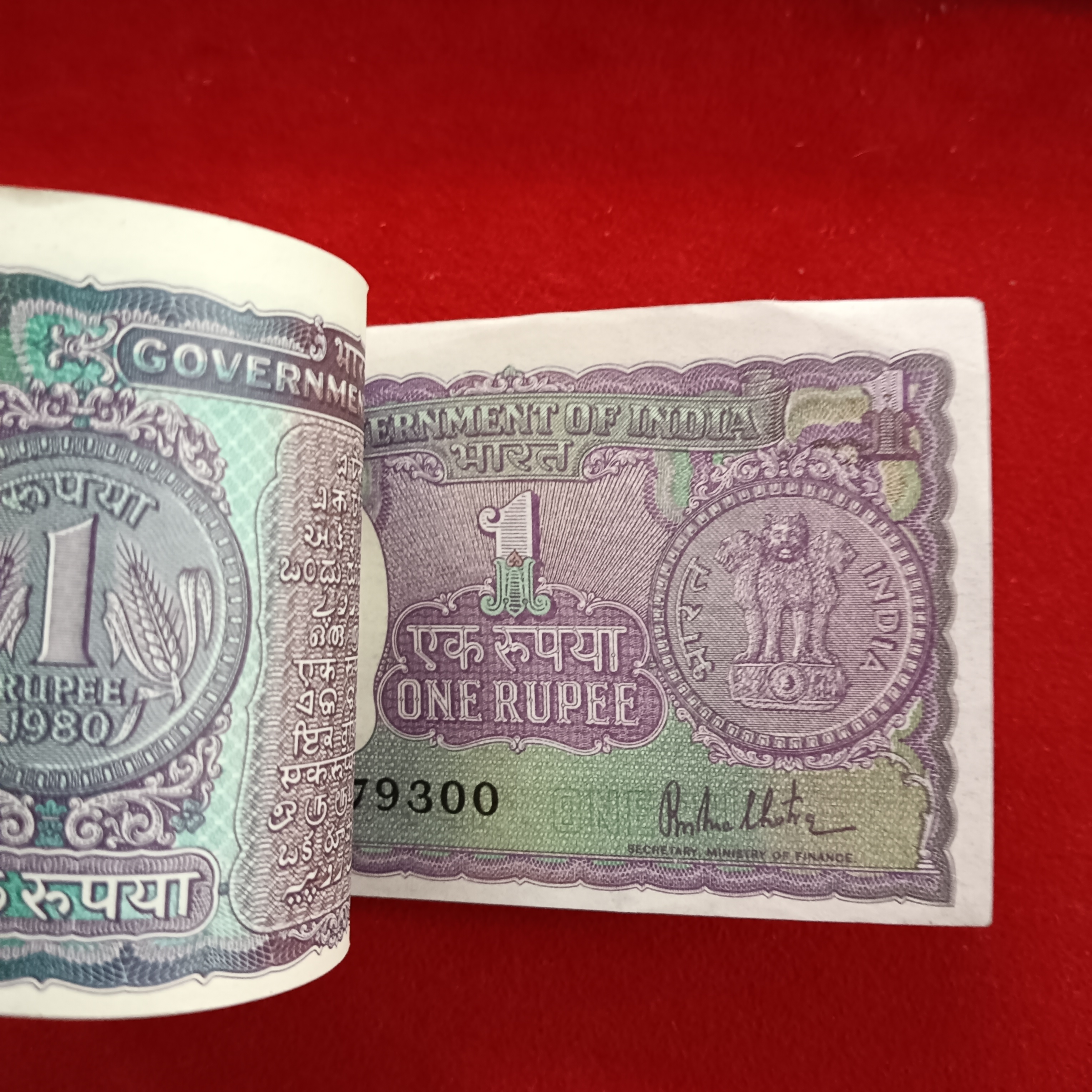 One Rs Gem UNC Chocolate Condition Bundle Finance Minister RN Malhotra 1980 Year 679201