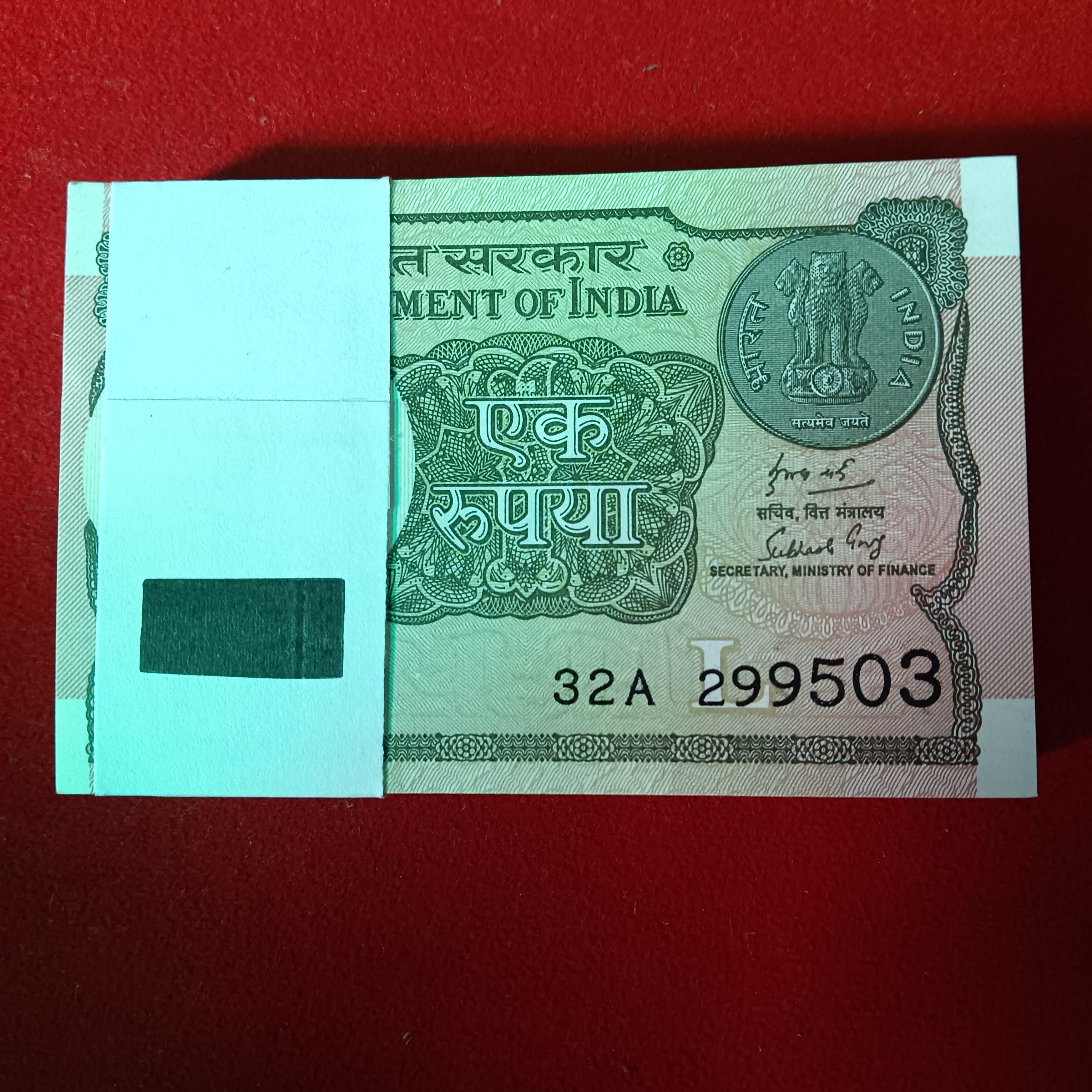 Indulge in the allure of the One Rupee New Bundle 2 starting Notes Missing from the 2018 series, boasting a total of 98 notes with the unique serial number Wiese 299503. Issued in pristine UNC (NEW) condition, this banknote holds a special place in numismatic history. This rare piece features the signature of Subash Garg, the former Finance Minister, adding to its exclusivity. Each note encapsulates a piece of contemporary Indian financial history, making it a coveted addition to any collector’s treasury. The intricate design and meticulous printing showcase the craftsmanship involved in producing this gem. Perfect for enthusiasts seeking a valuable investment or collectors aiming to enrich their assortment with a piece of modern currency with significant historical and monetary value.