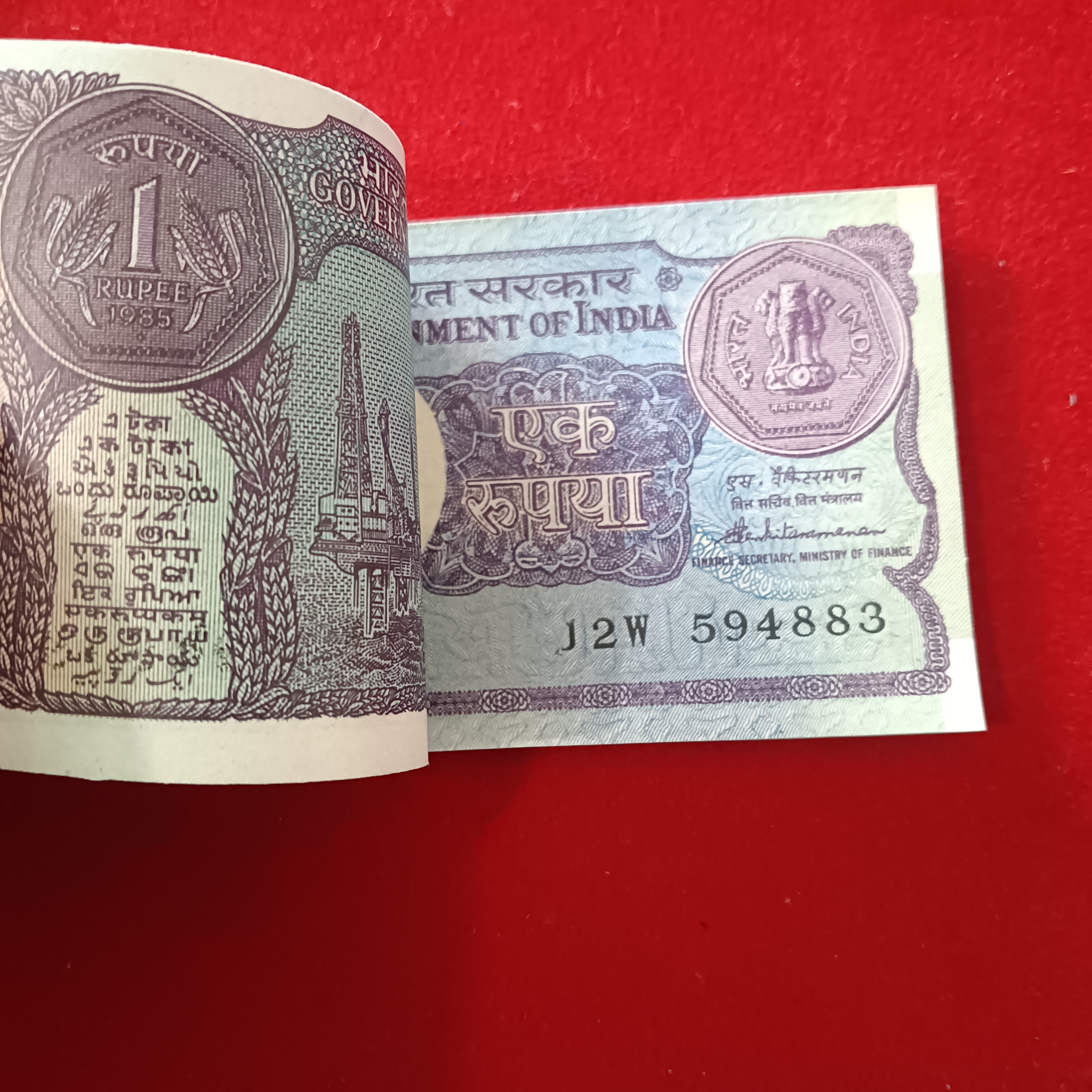 Delve into the rich history of Indian currency with this rare gem from 1985 – the One Rupee bundle featuring the signature of Finance Minister S. Venkitaraman. Issued in uncirculated (UNC) condition, this collectible item holds a special place in numismatic enthusiasts’ hearts. Each note in the bundle is in pristine condition, a testament to its rarity and value. The significance of this piece lies not just in its denomination but also in its association with a pivotal era in Indian economic history. With a unique serial number of 594801, this bundle is a true collector’s grade item, offering a glimpse into the past while holding promise for the future. Whether you’re a seasoned collector or a novice enthusiast, this piece is a must-have addition to your collection, encapsulating a bygone era of Indian finance.