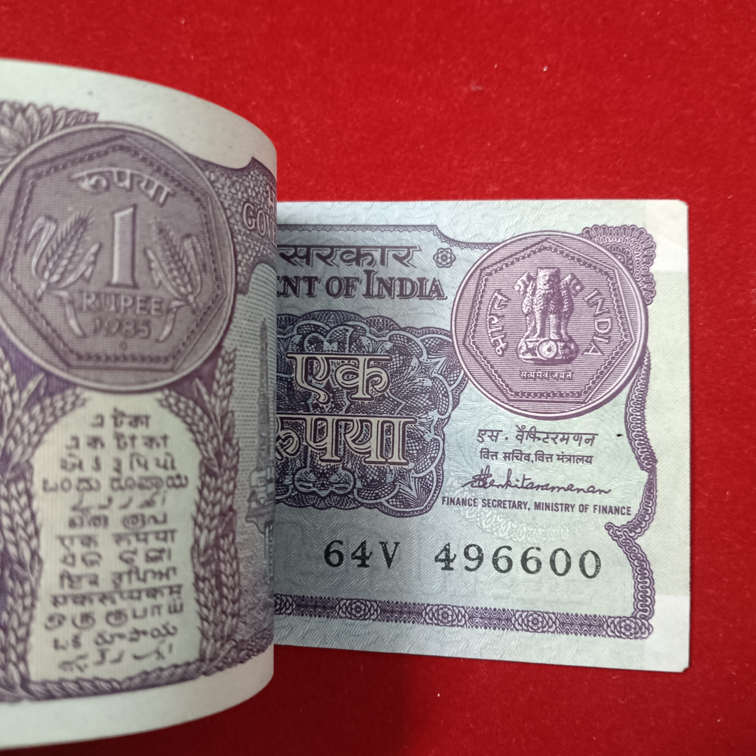 - One Rs Old Small Coin Full Bundle A 48 Finance Secretary S.Venketraman 1985 Year 96501