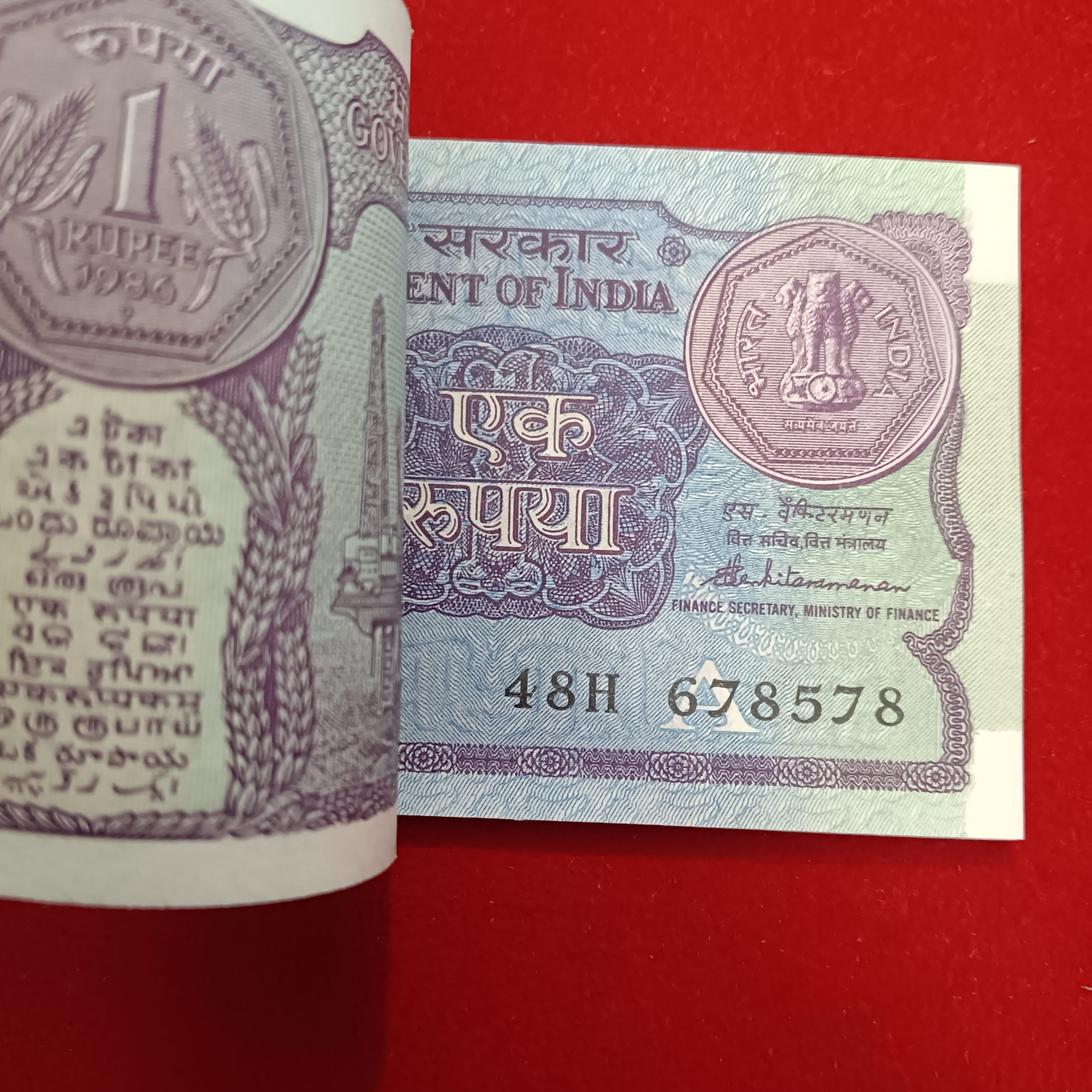 - One Rs Old Small Coin Full Bundle A 49 Finance Secretary S.Venketraman 1986 Year 678501