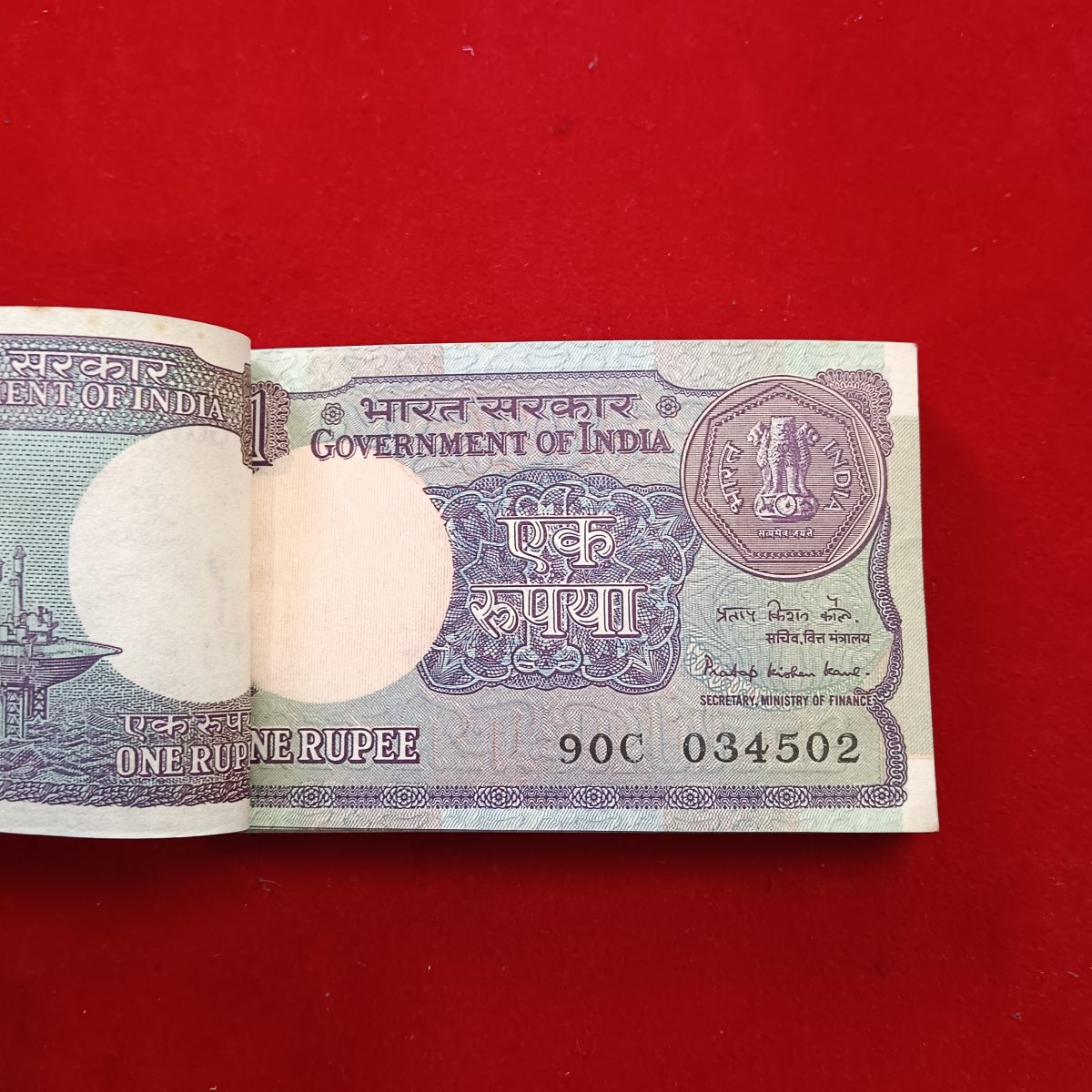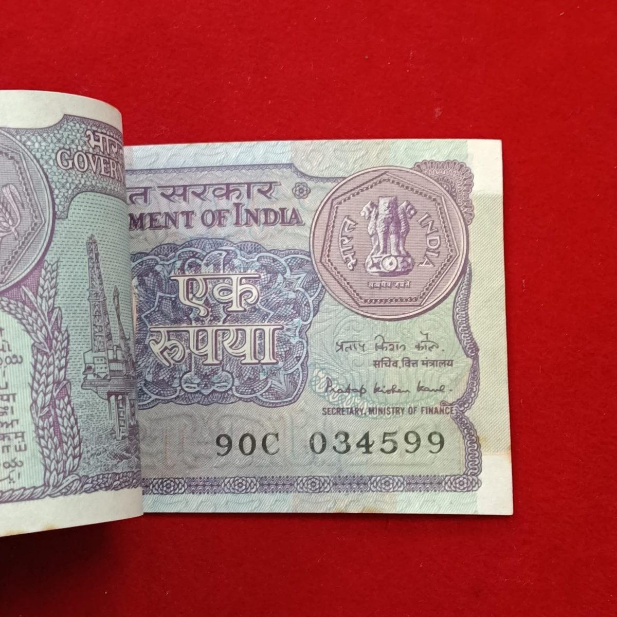 Indulge in the rich history of Indian numismatics with this remarkable collectible – the One Rupee Semi Fancy Number 034567 Finance Minister Pratap Krishna Kaul Complete Bundle from the year 1984. Issued by the Reserve Bank of India, this 1 Rupee note bears the unique serial number 034567, making it a rare find for collectors. The note is in impeccable condition, resembling a “chocolate” hue due to its age and preservation. Finance Minister Pratap Krishna Kaul’s signature adds a touch of authenticity and historical significance to this piece.