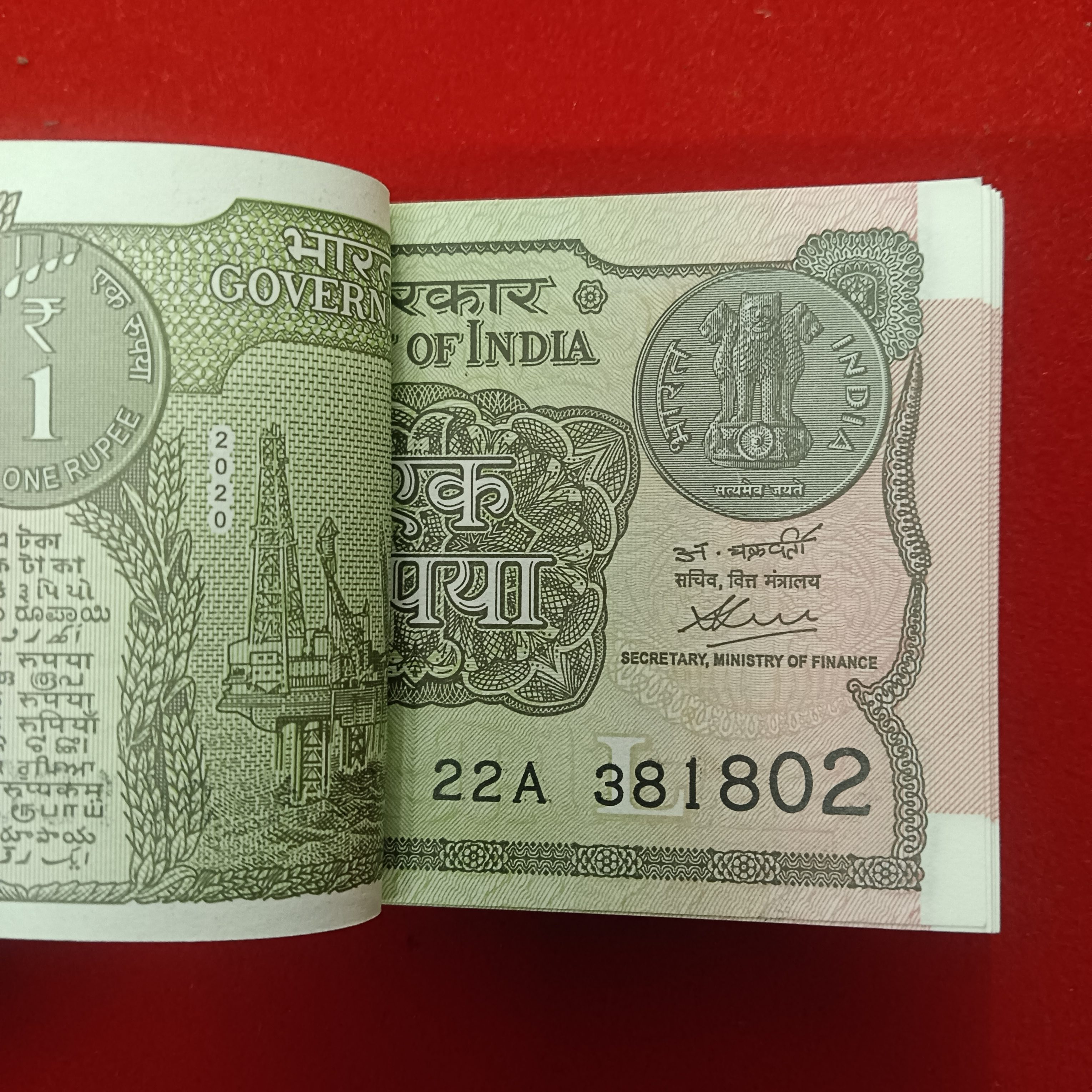 One Rs Rare Full Bundle Finance Secretary Atanu Chakraborty Year 2020 Gem Bunc Condition 381801