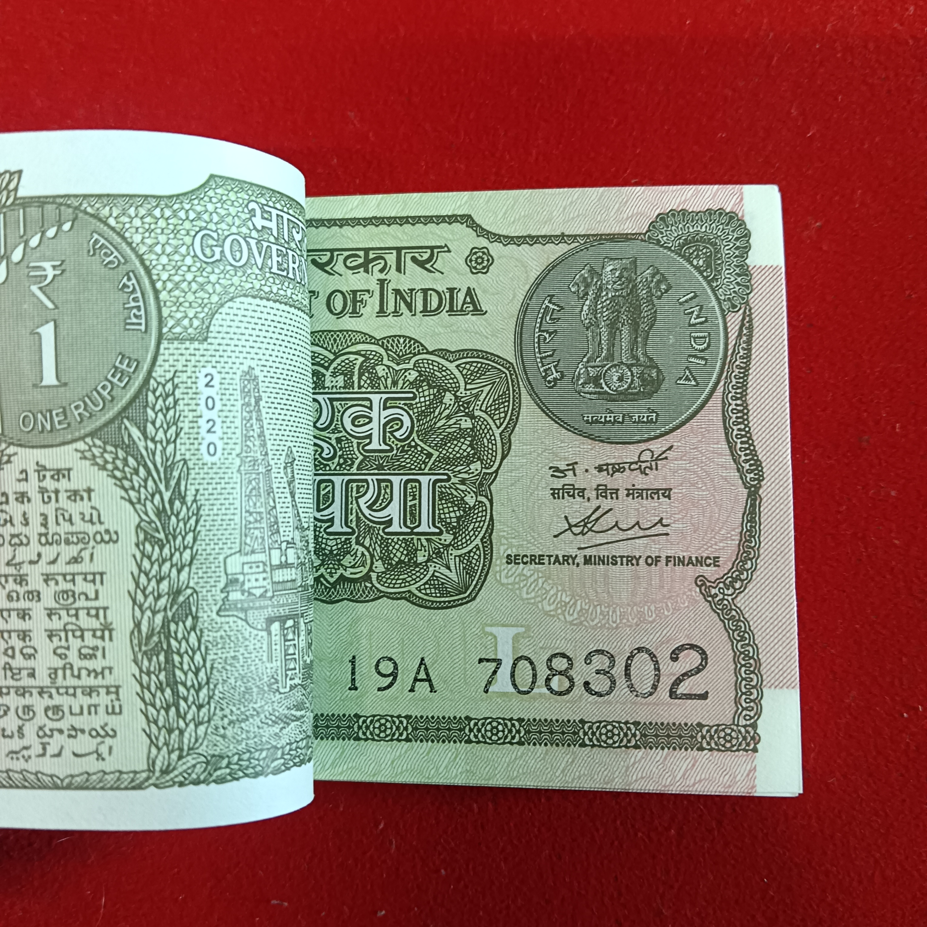 One Rs Rare Full Bundle Finance Secretary Atanu Chakraborty Year 2020 Gem Bunc Condition 708301