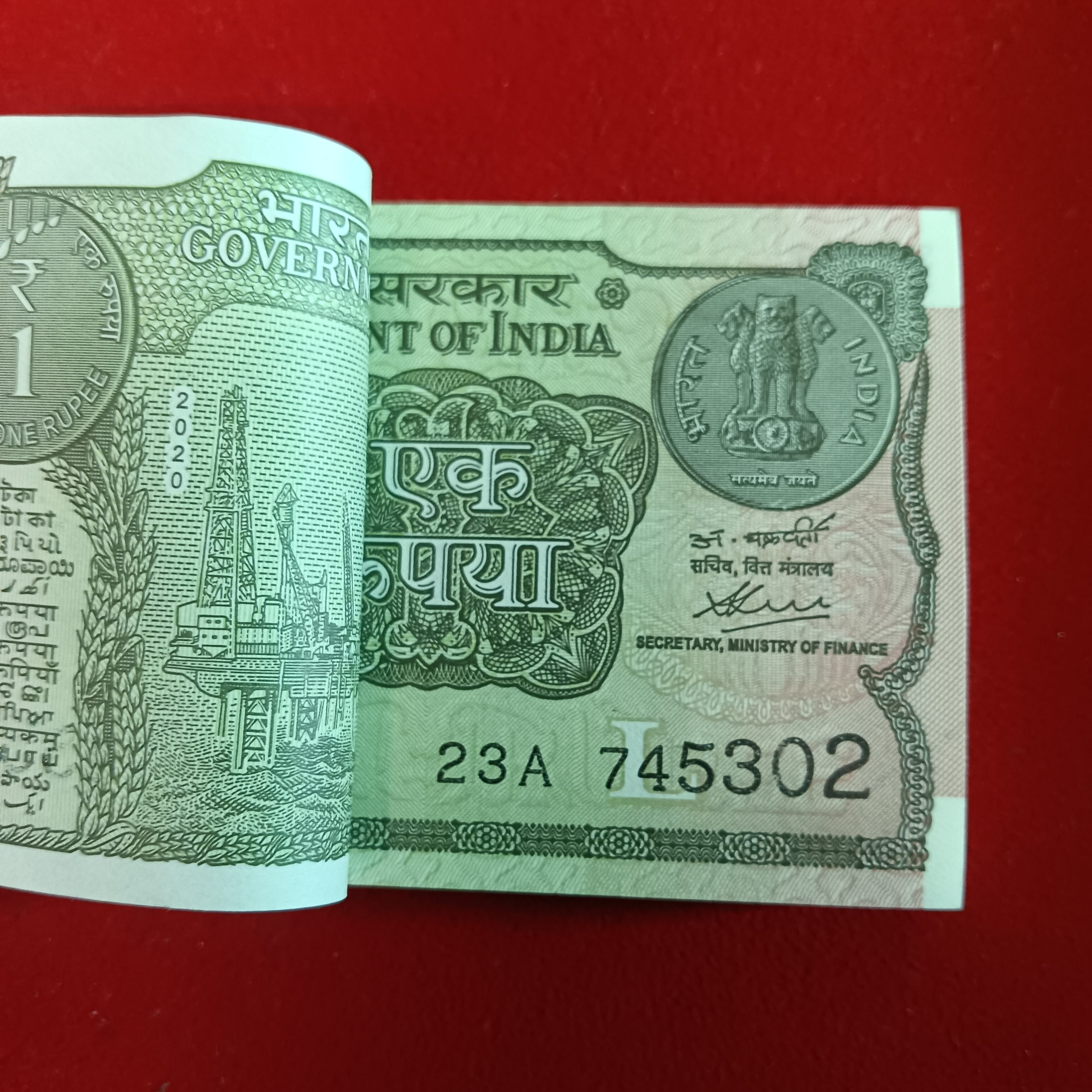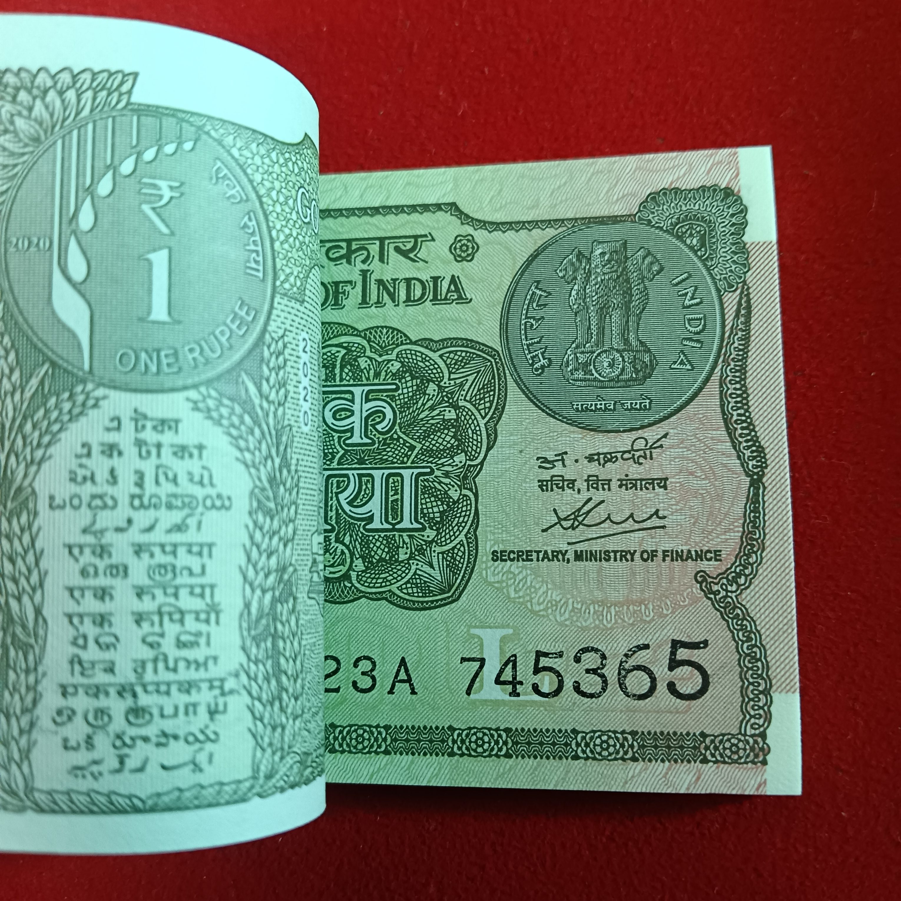 One Rs Rare Full Bundle Finance Secretary Atanu Chakraborty Year 2020 Gem Bunc Condition 745301