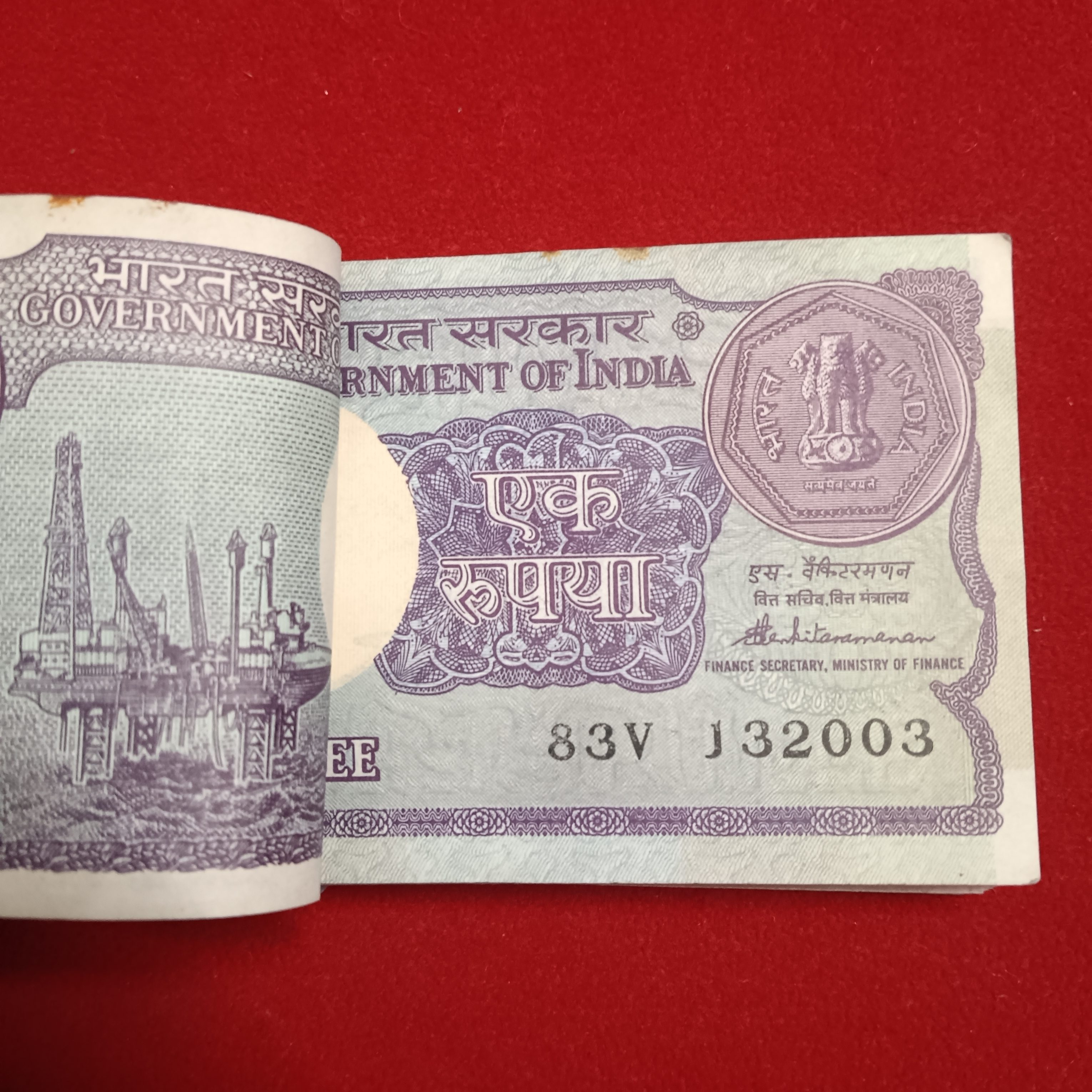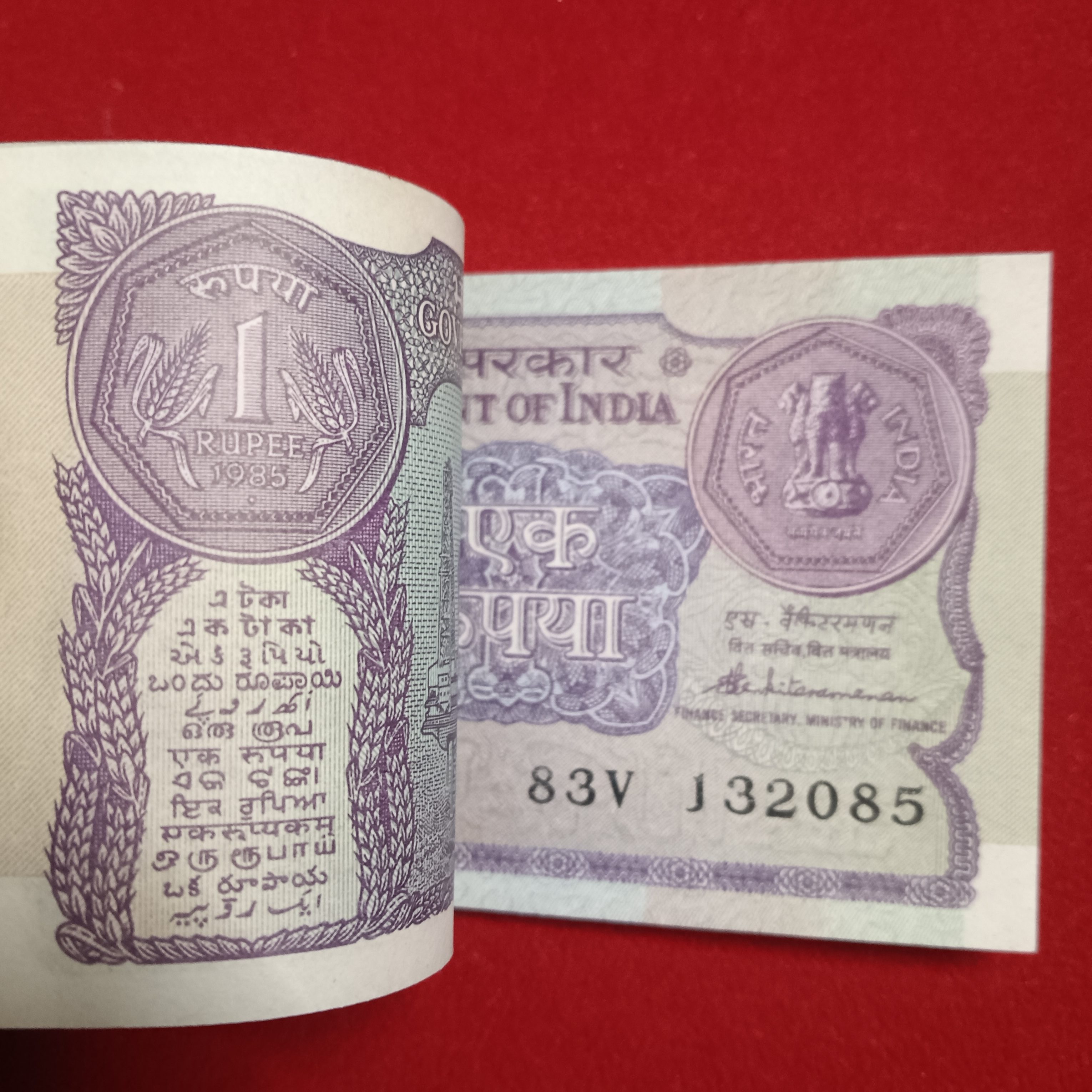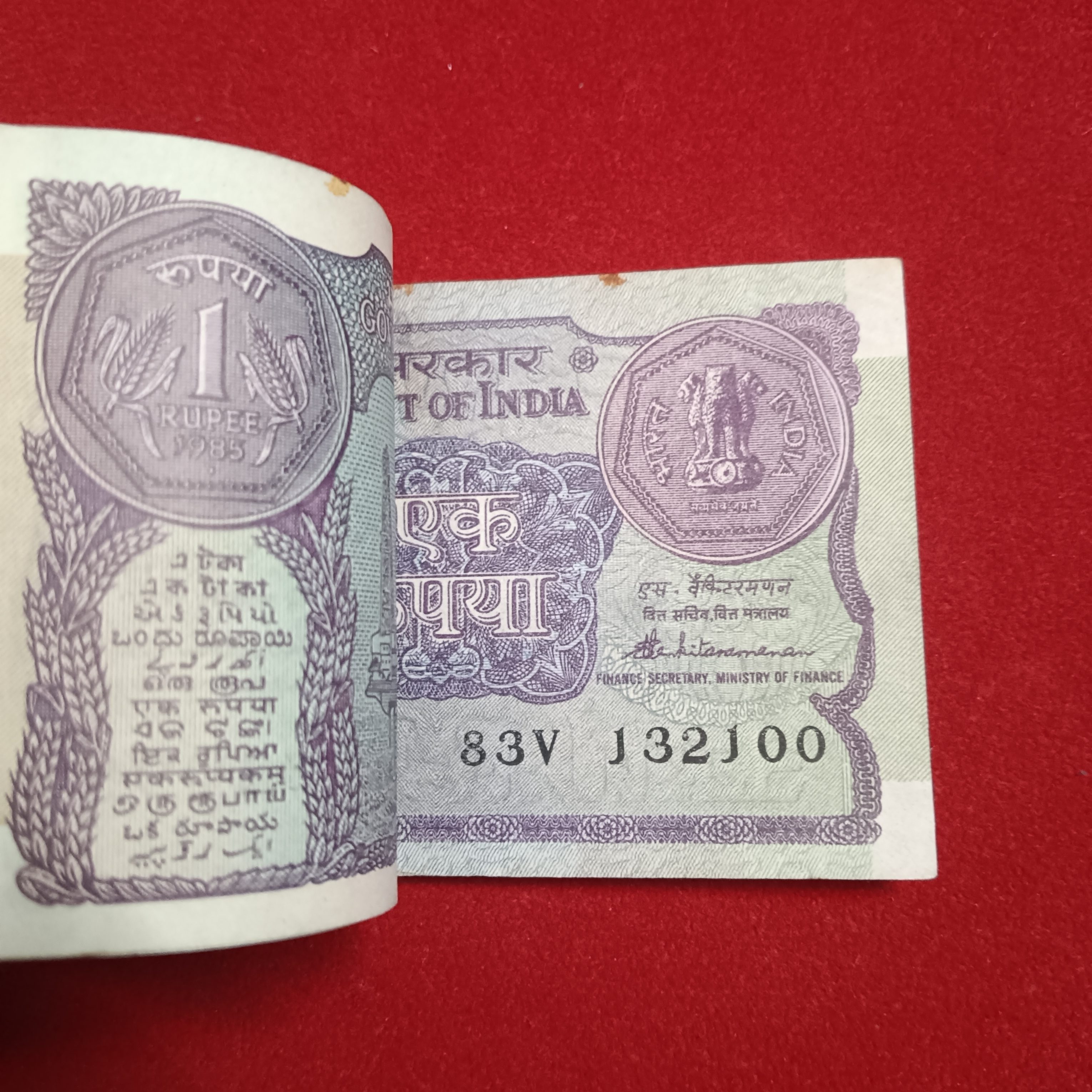 - One Rs Rare Full Bundle Finance Secretary S.Venketramam 1985 Year Republic of India 132001