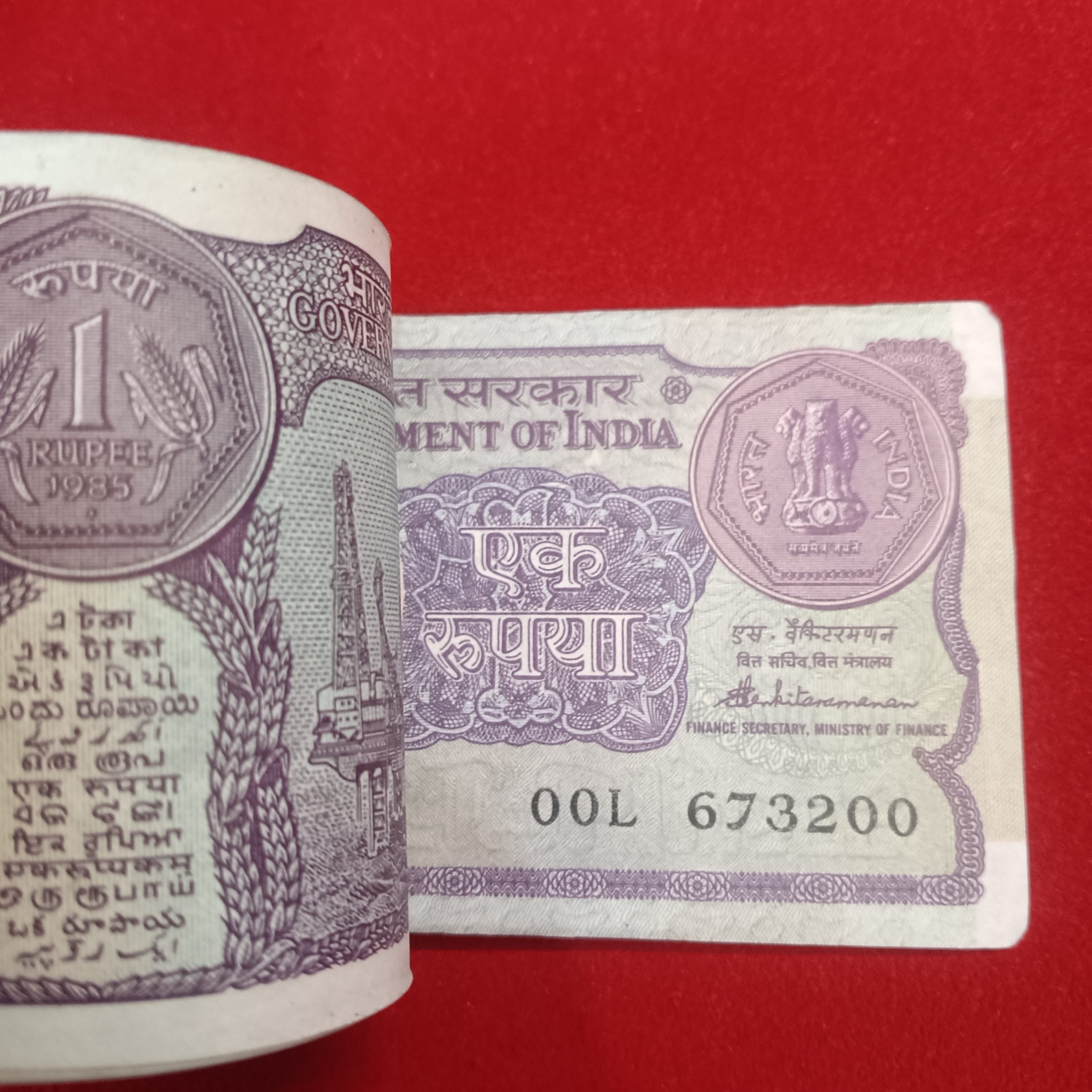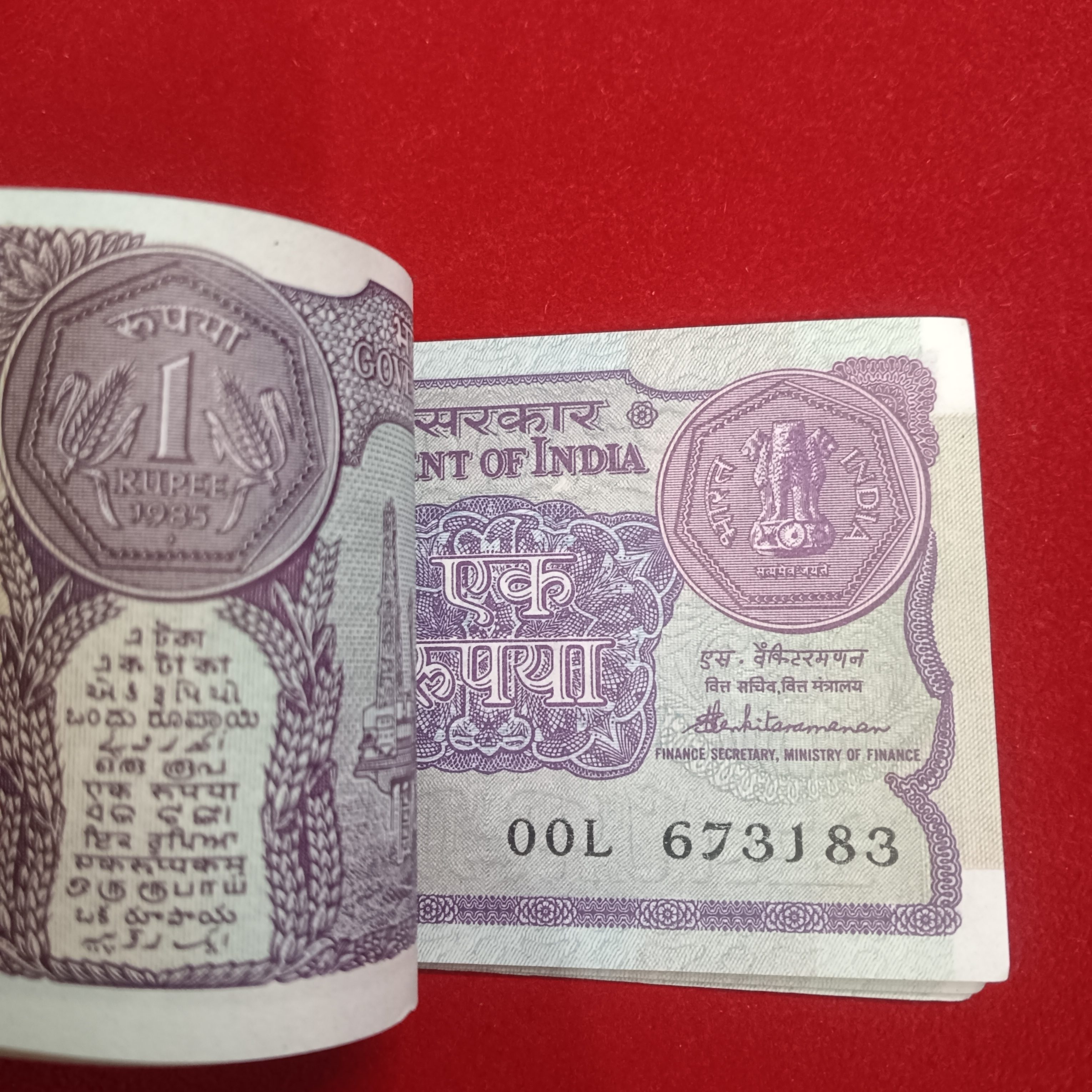 One Rs Small Coin Bundle Serial 95 Notes 1985 Year Finance Minister S.Venketraman Unc Condition 673105