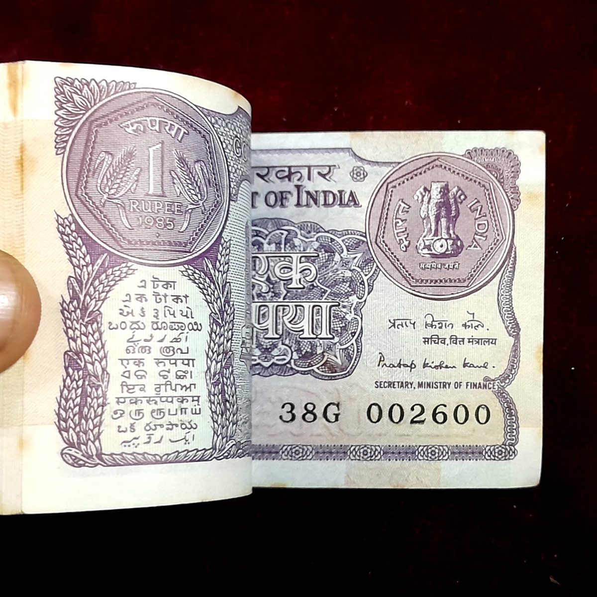 One Rs Small Coin Pkt Finance Minister Pratap Krishnan Kaul 1985 Year 022501