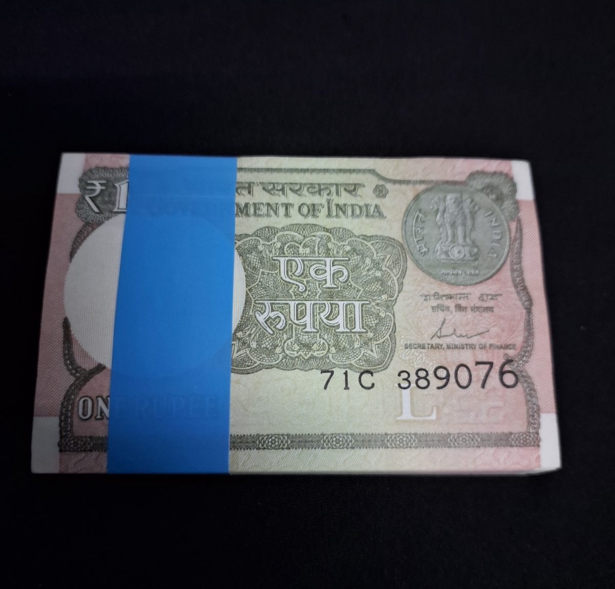 ONE RUPEE BUNDLE ONE NOTE ERROR SERIAL NO. SHIFTED SERIAL NO. 389001