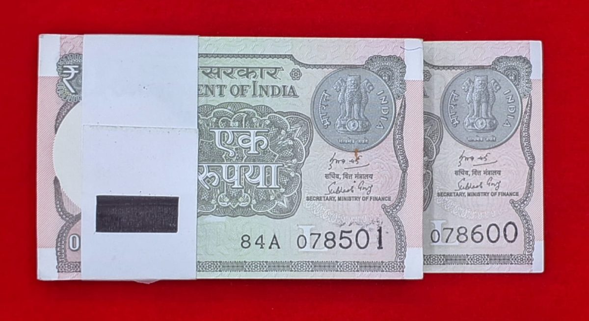 One rupees packet 2018 A-63 Subhash Chandra Garg. Seial no. 078501
