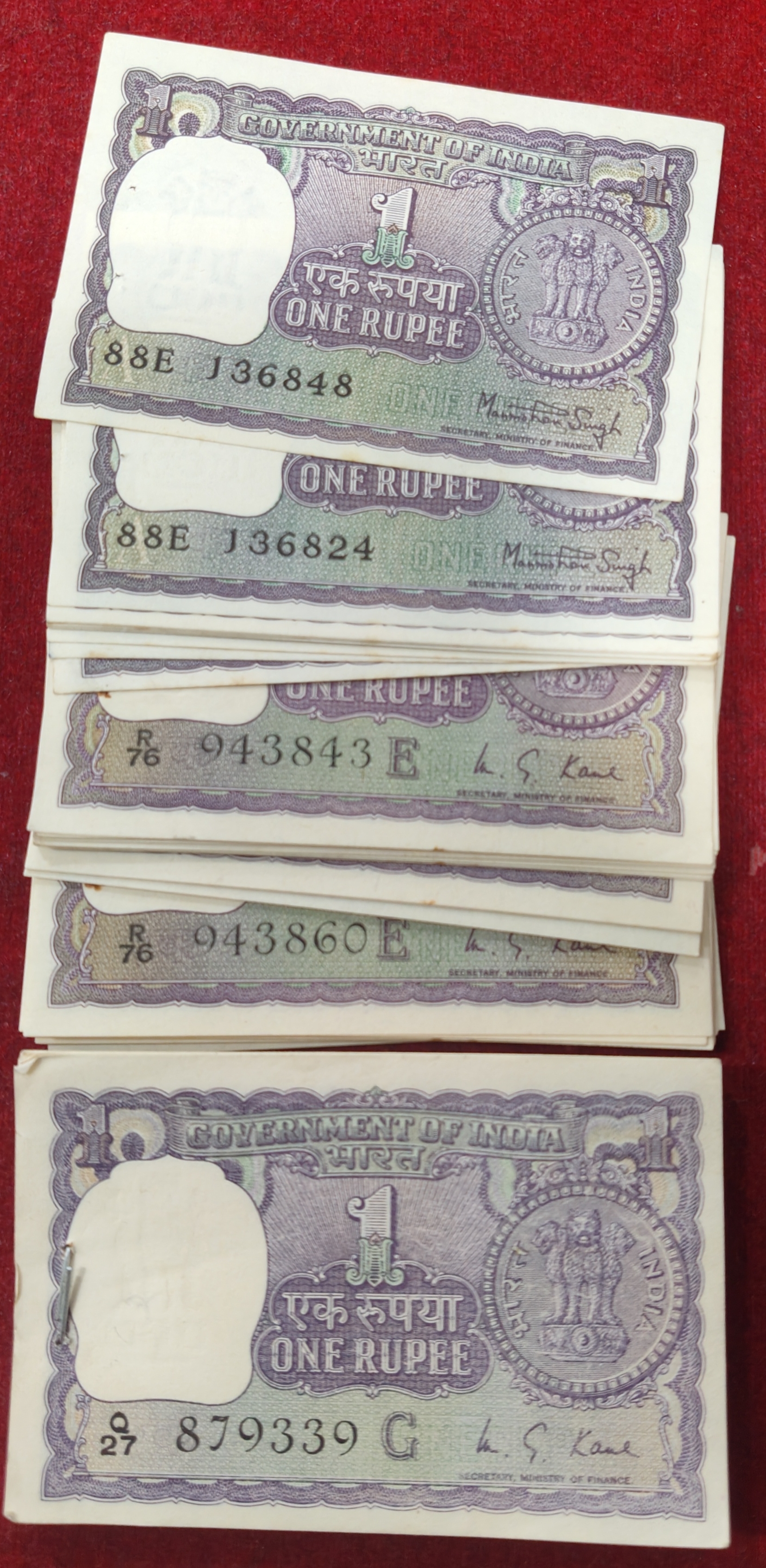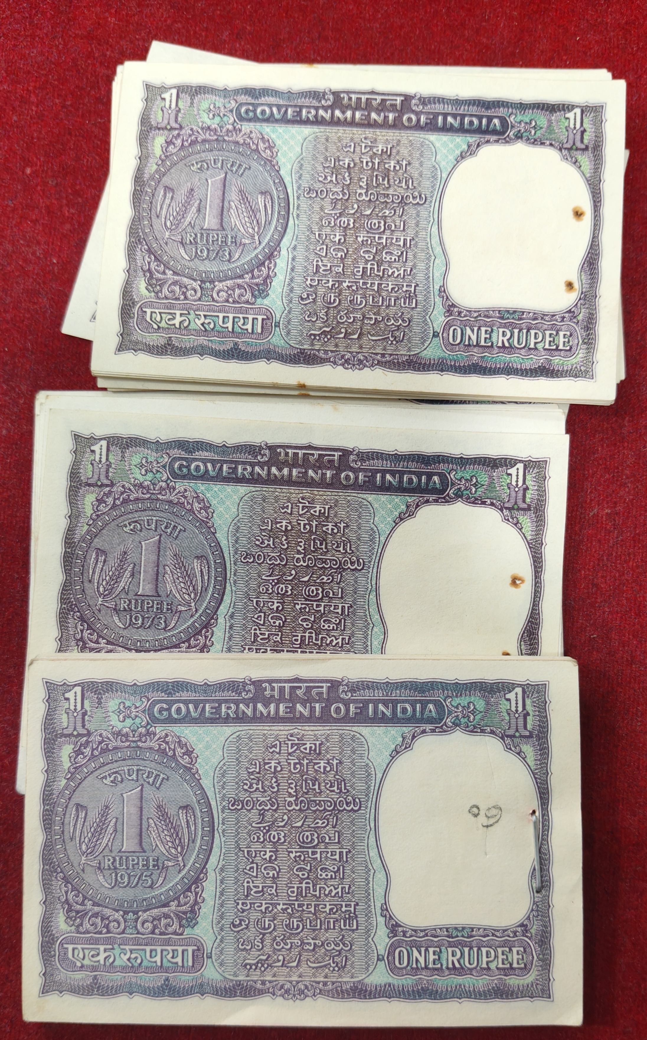 One ruppes big size unc mix governer mix year (100 pcs lott ) unc #123