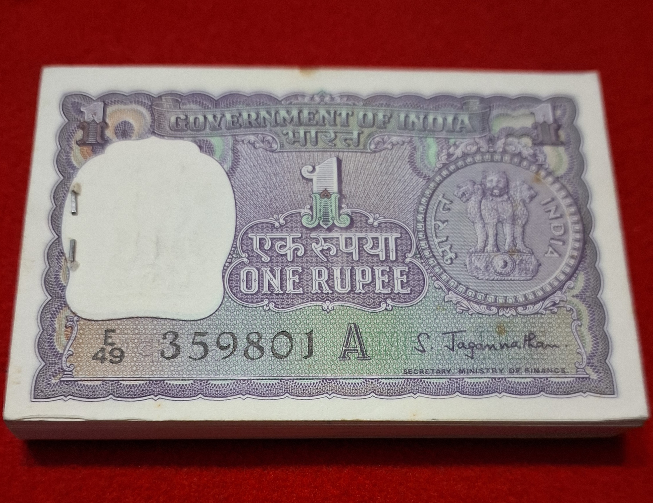 RARE ONE RUPEE PACKET 1967 SIGNATURE S. JAGGANATHAN SERIAL NO. 359801