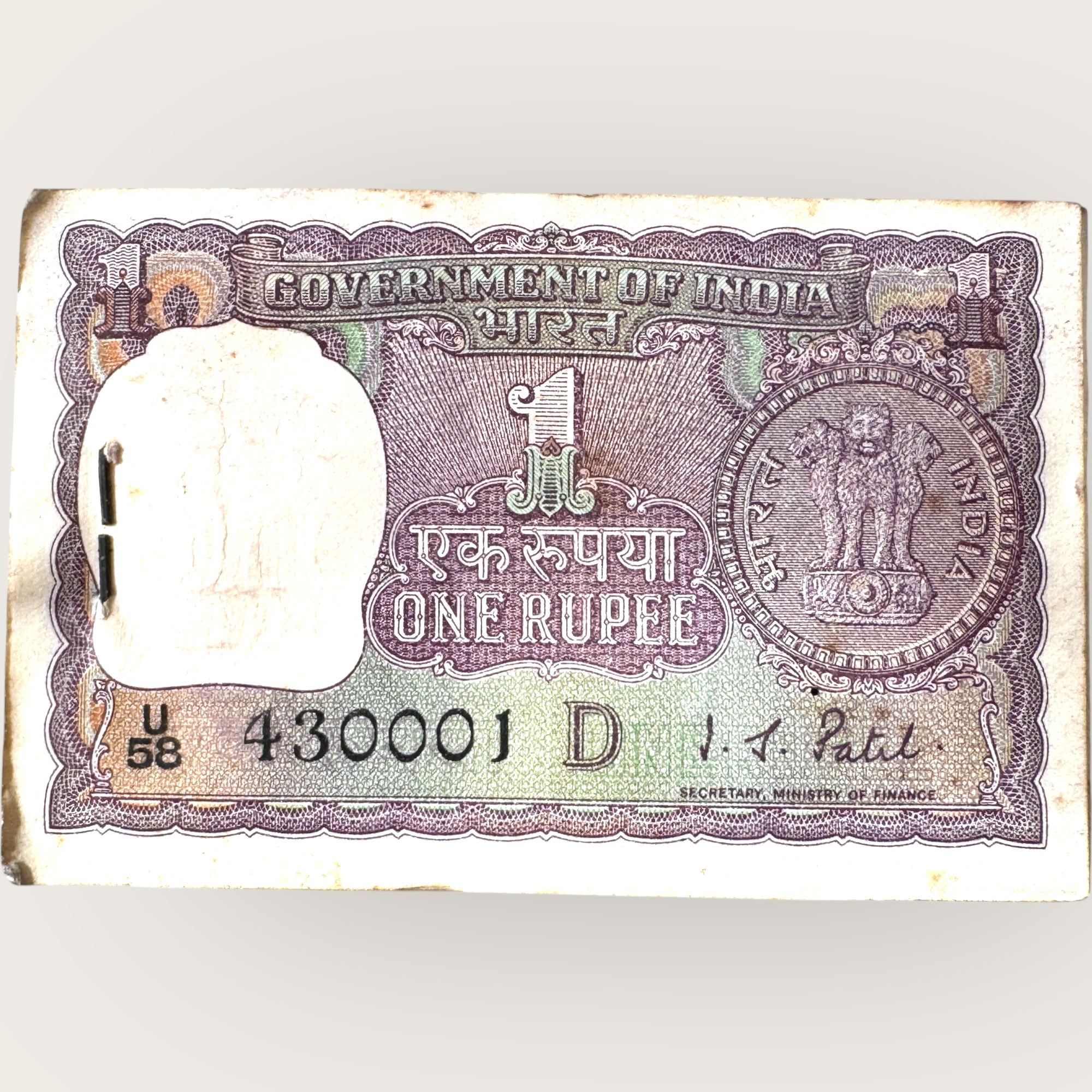 Re 1 India Banknote Serial Bundle Signed By I G Patel 1972 Issue Inset D Unique and Rare