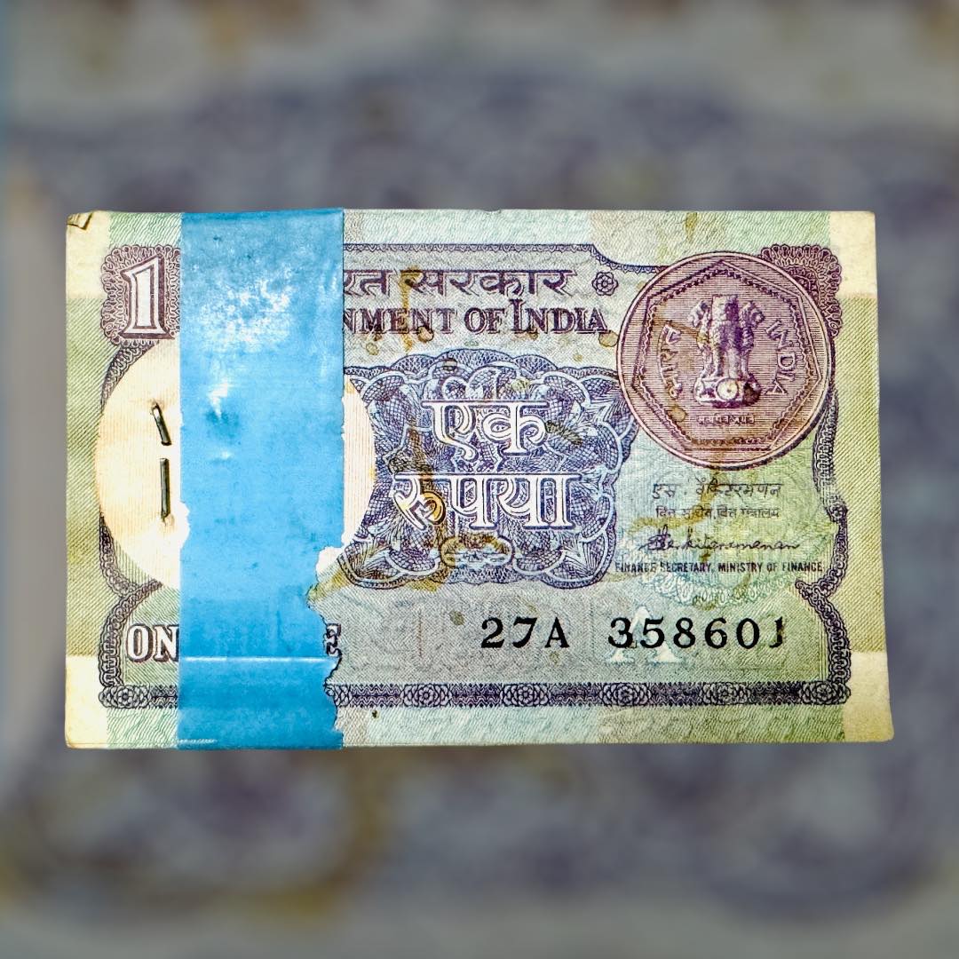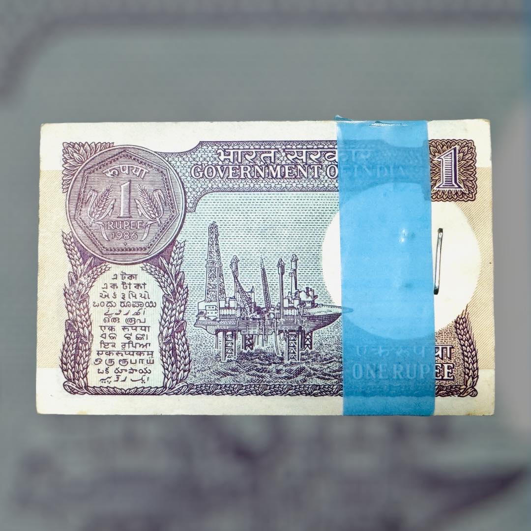 Re 1 INDIA BANKNOTE SERIAL BUNDLE Signed by S. VENKETRAMAN Inset A Year 1986 UNIQUE AND RARE)