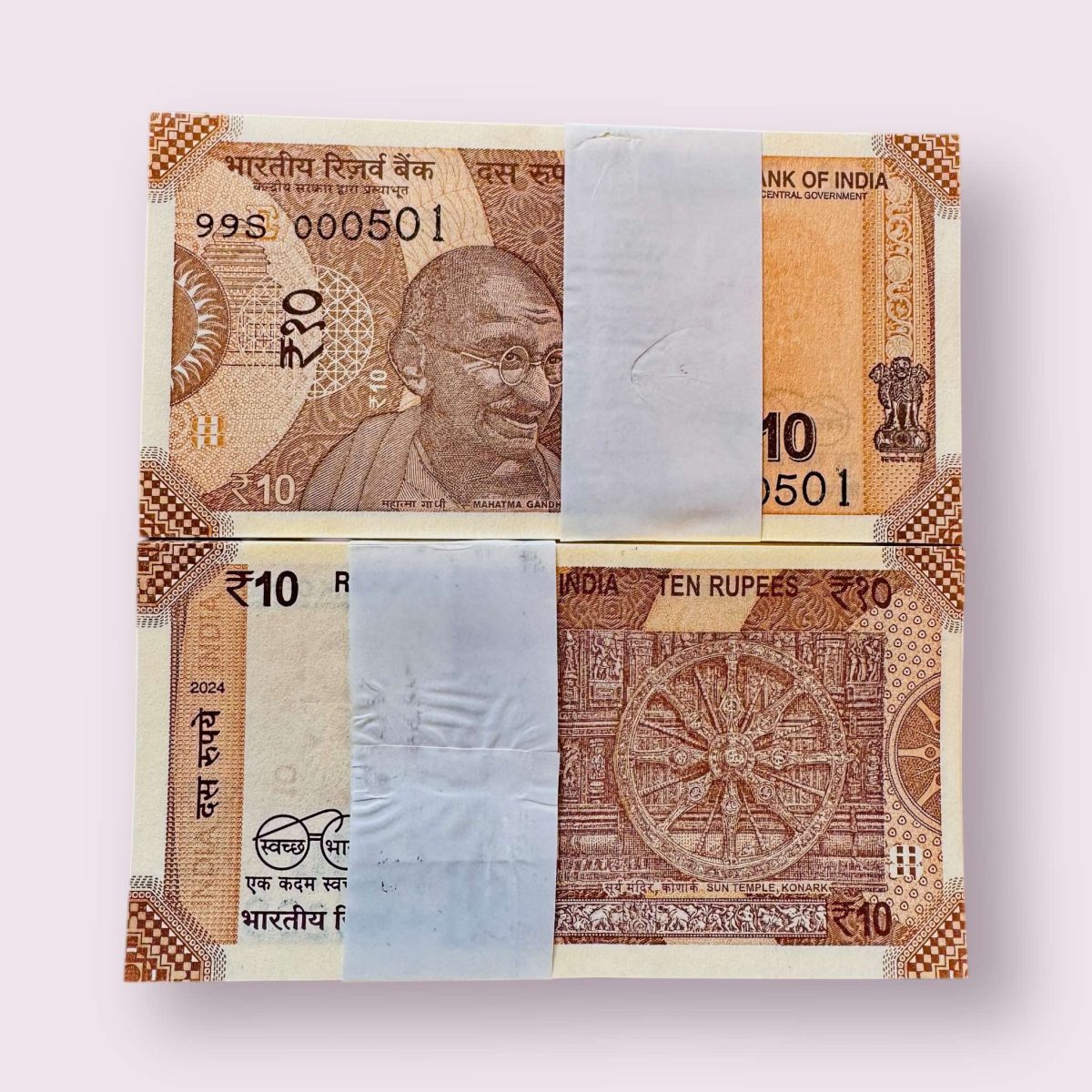 Rs 10 India Banknote Low Serial Issue 000501 to 000600 GEM Unc Unique and Rare INSET E Issue 2024 Rare