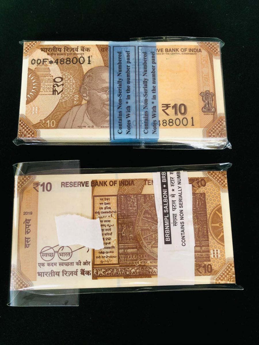 Rs 10 India Banknote Replacement Star Issue 00F Inset L Serial Bundle Gem Unc 2019 Shaktikant Das