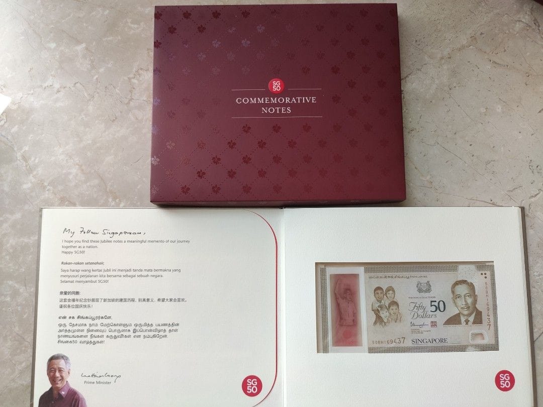 Comes with 5 x S$10 and 1 x S$50 and a folder.