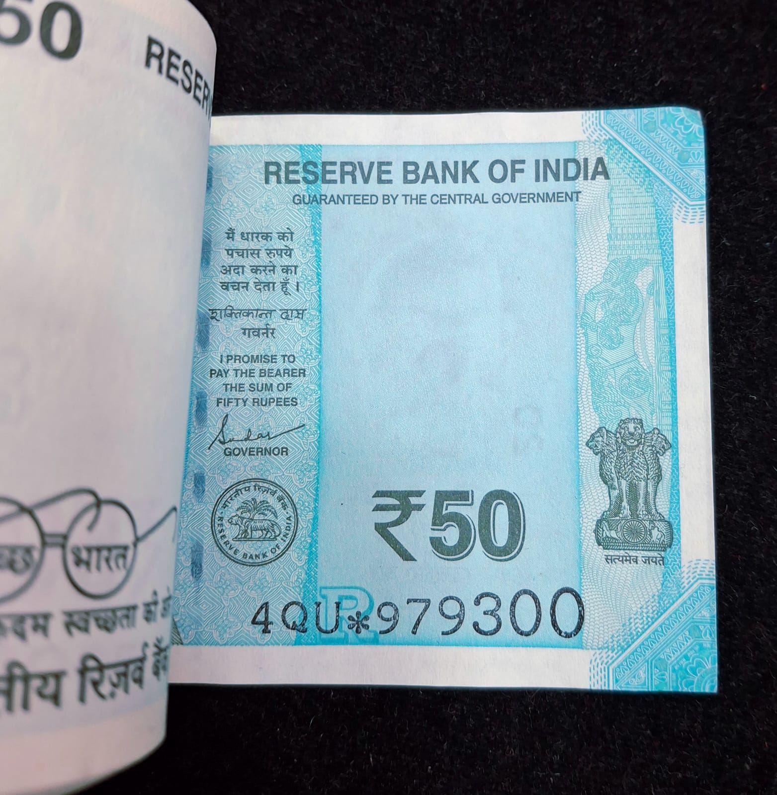 STAR * ( 100 NOTES) SERIAL PACKET 50 RUPEES 2024 GOVERNOR SHAKTIKANT DAS RARE GEM UNC