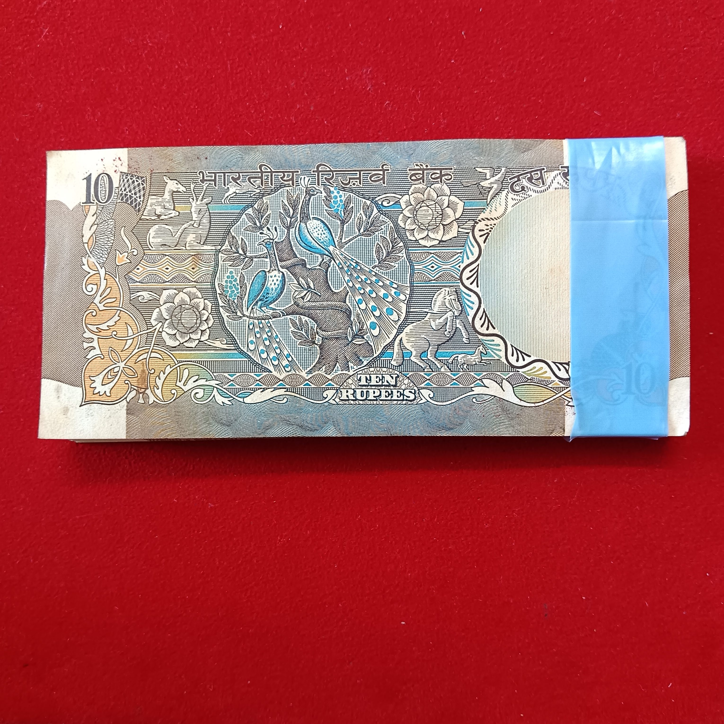 Ten Rs Ex Rare Peacock Full Bundle Governor RN Malhotra Republic of India 014801