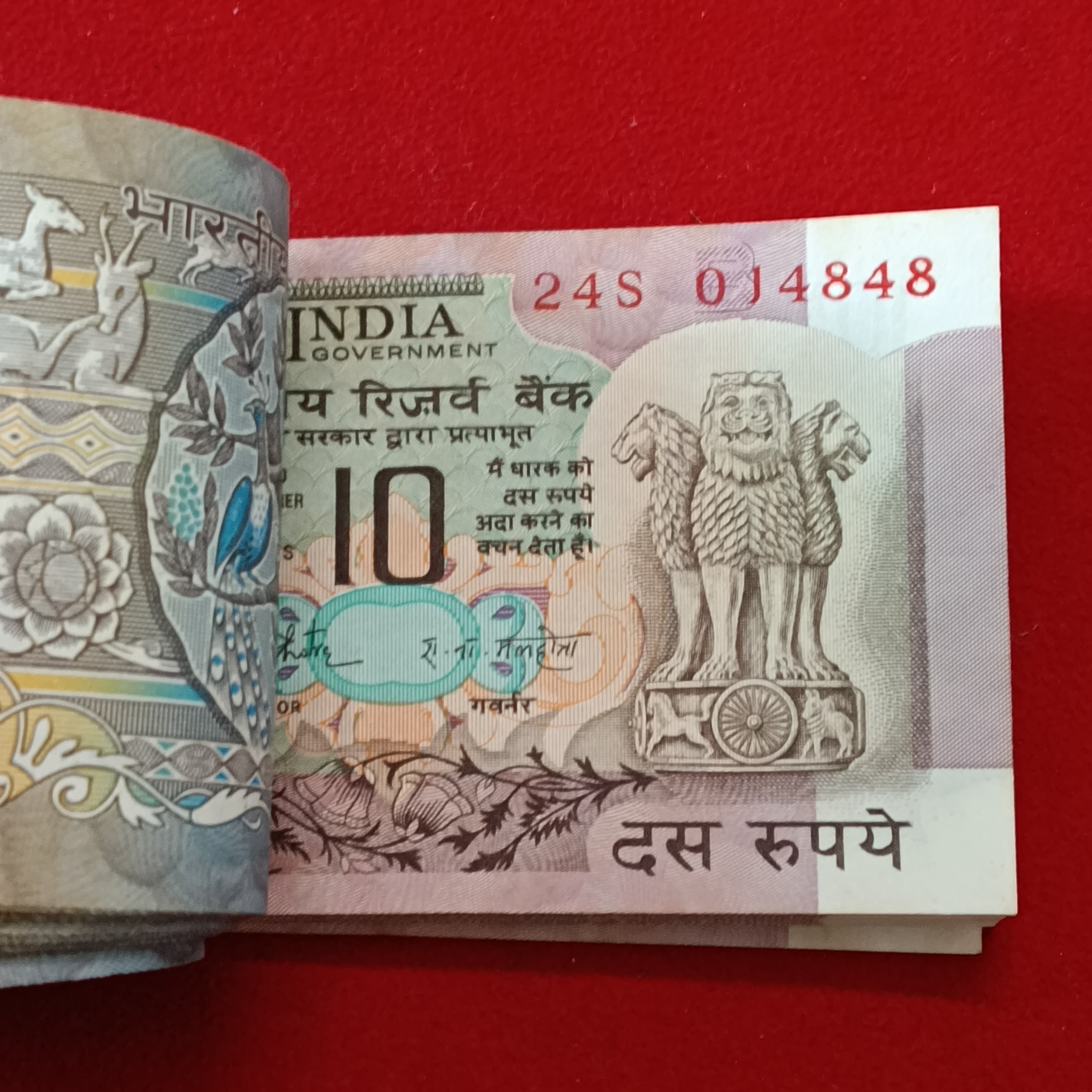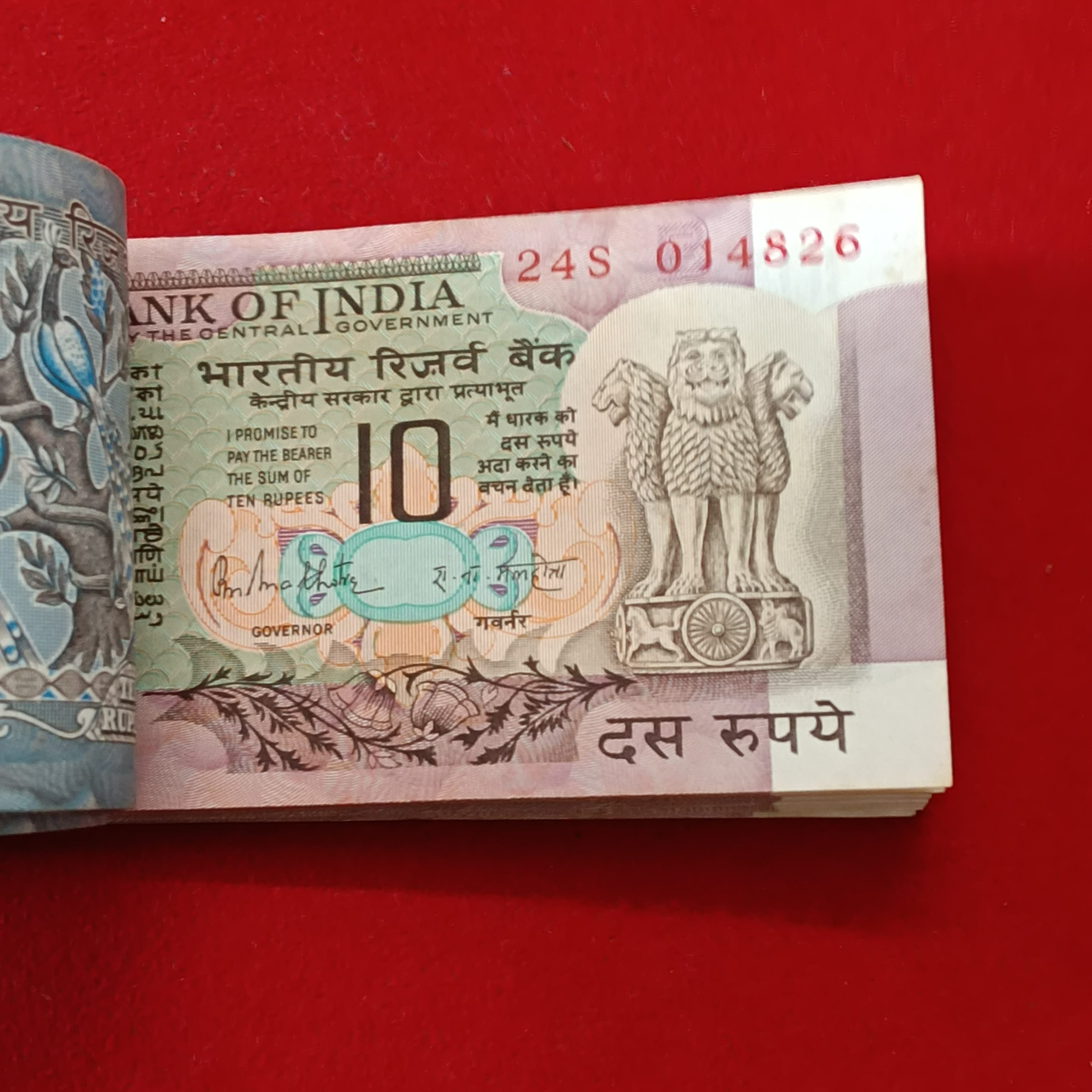 - Ten Rs Ex Rare Peacock Full Bundle Governor RN Malhotra Republic of India 014801